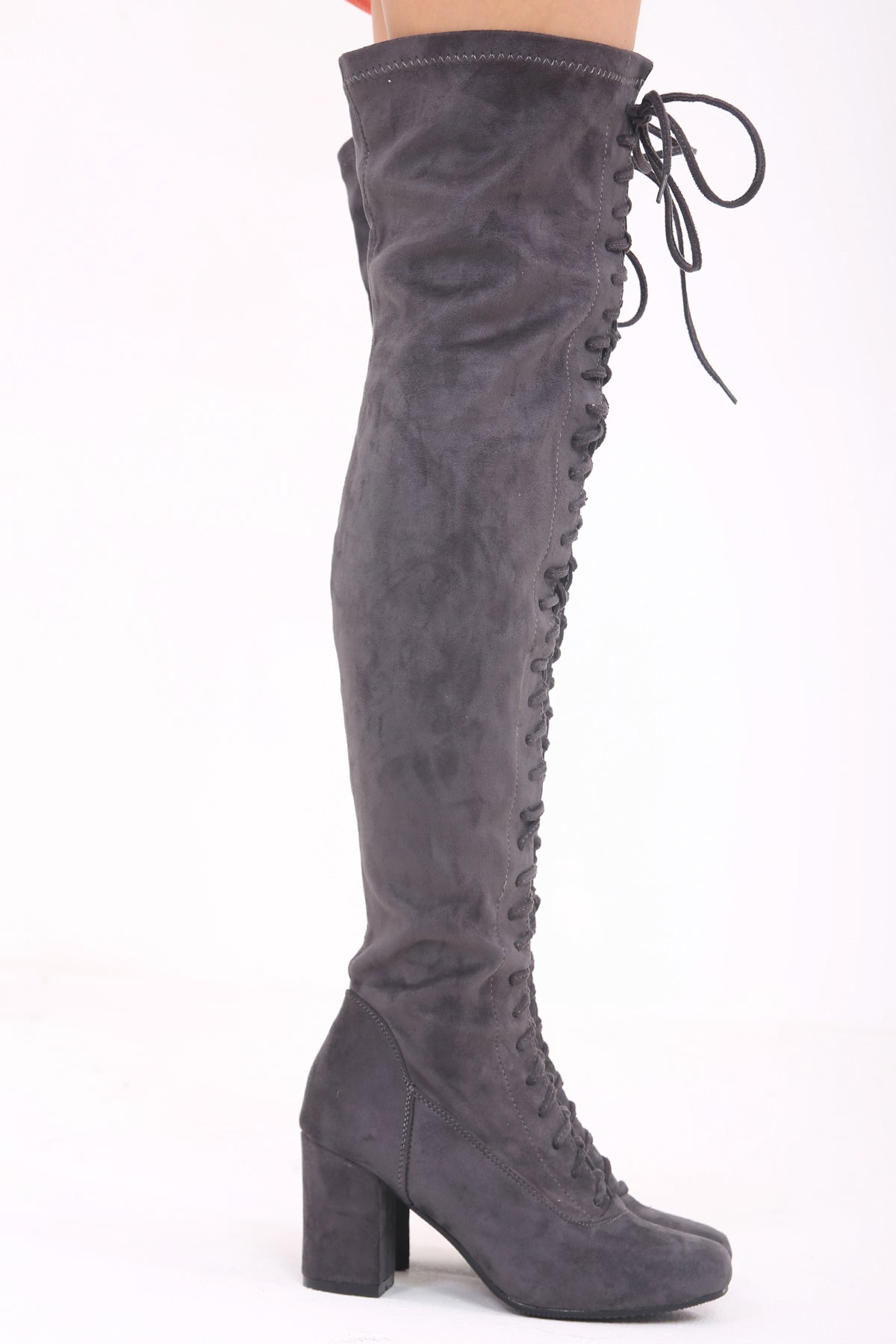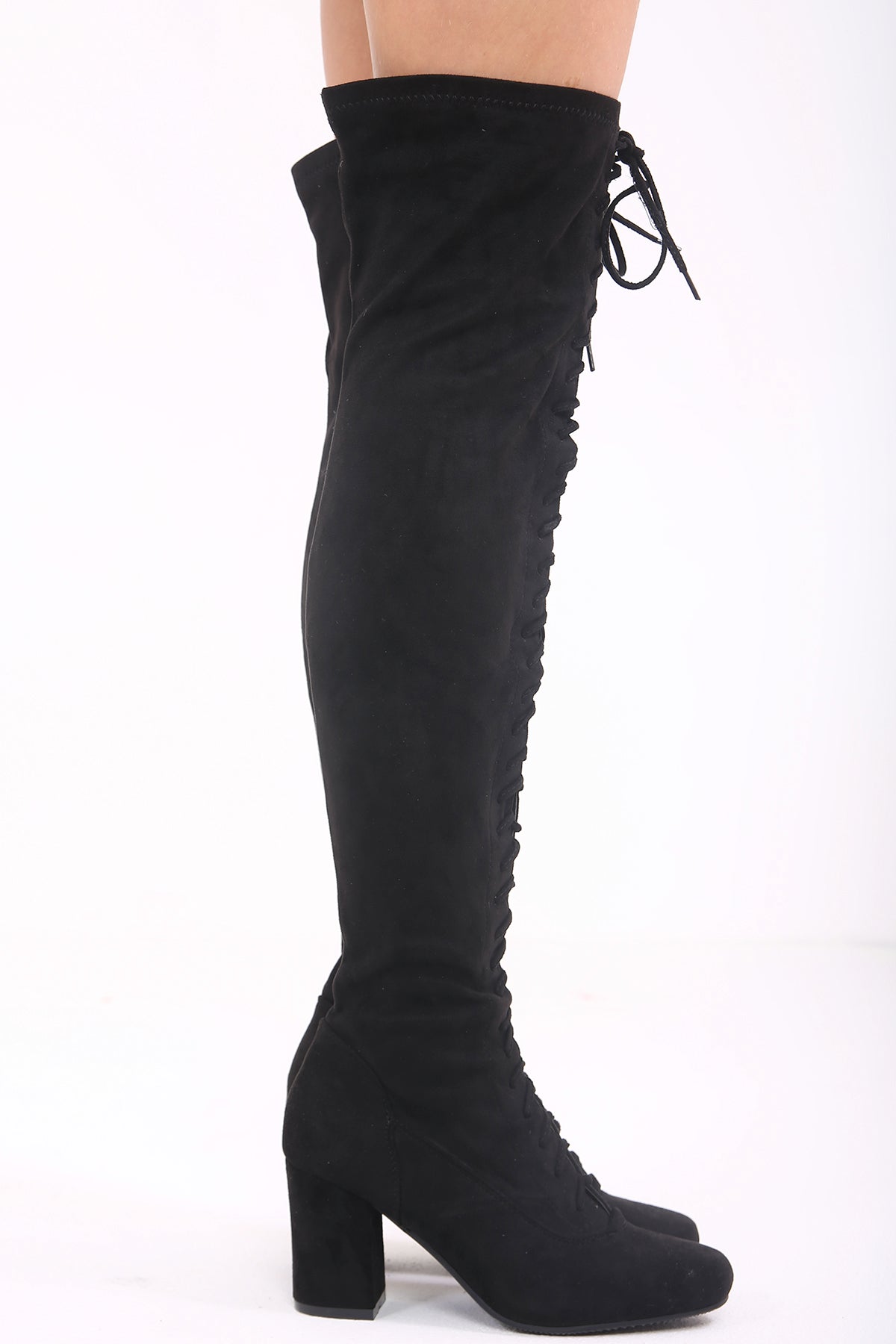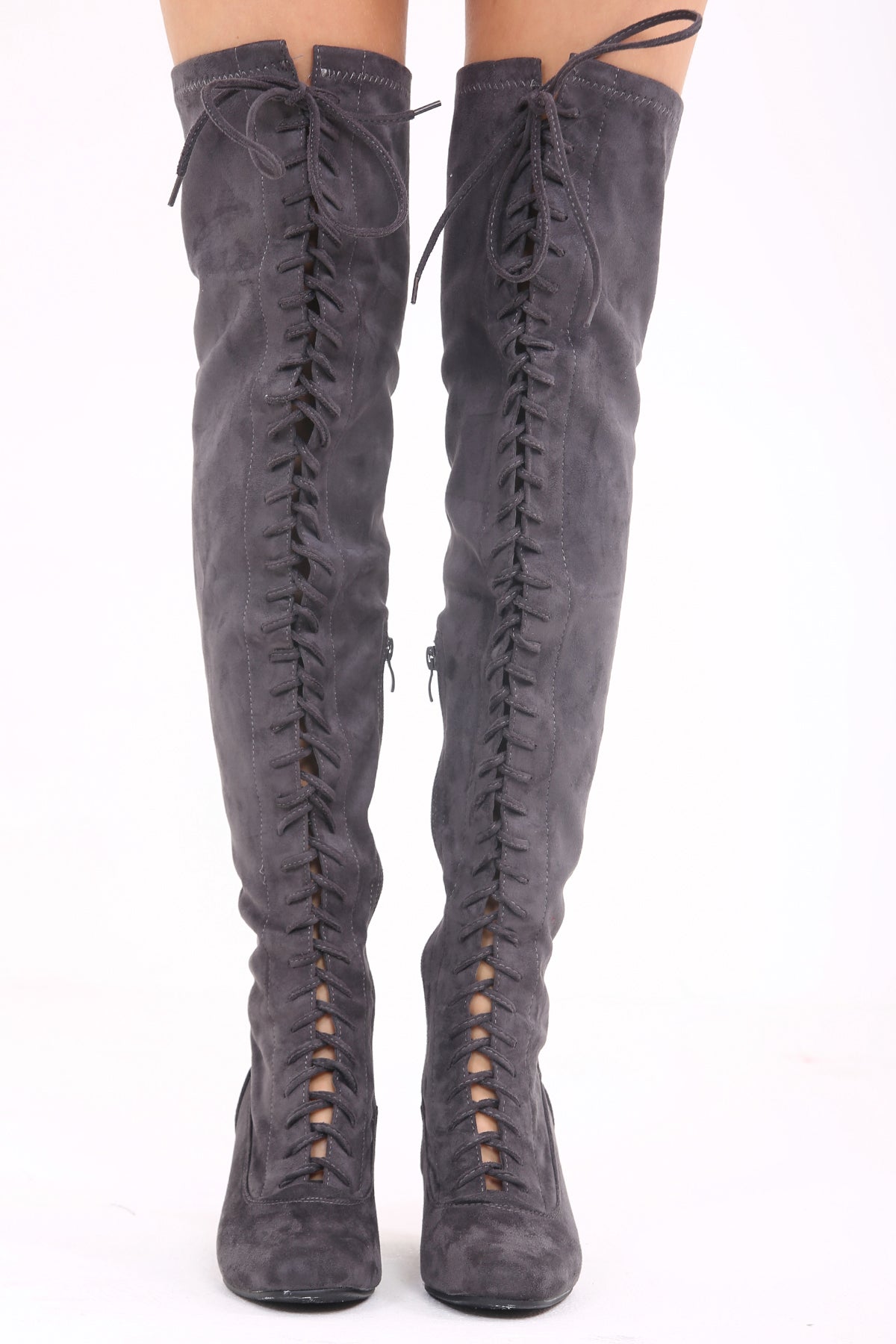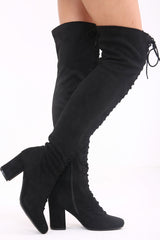 Faux Suede Over The Knee Lace Up Heeled Boots