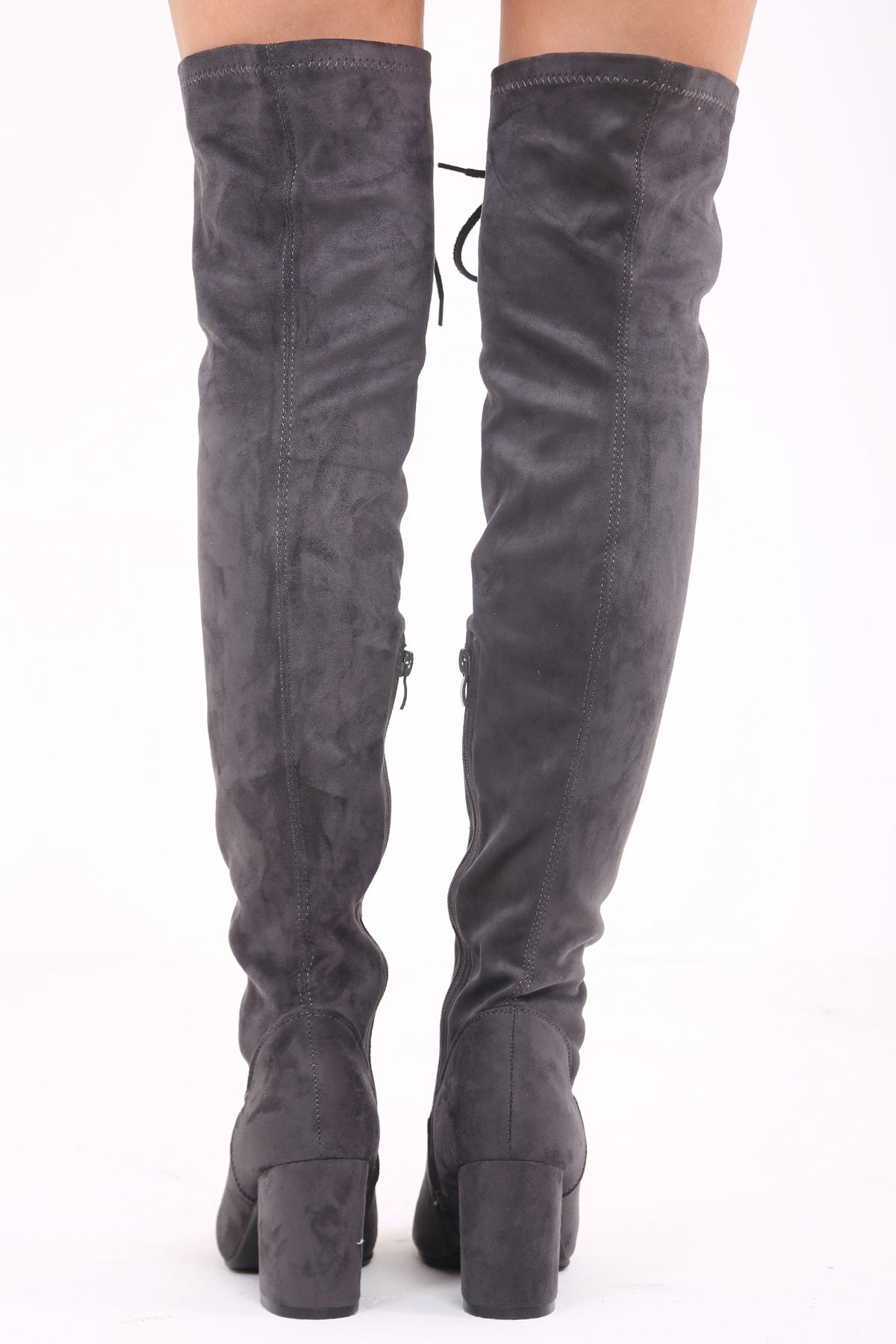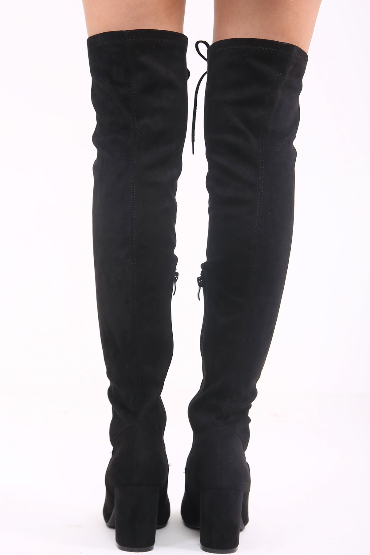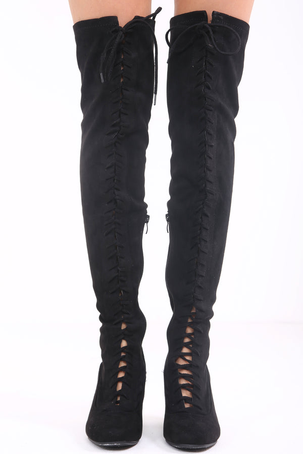 Faux Suede Over The Knee Lace Up Heeled Boots