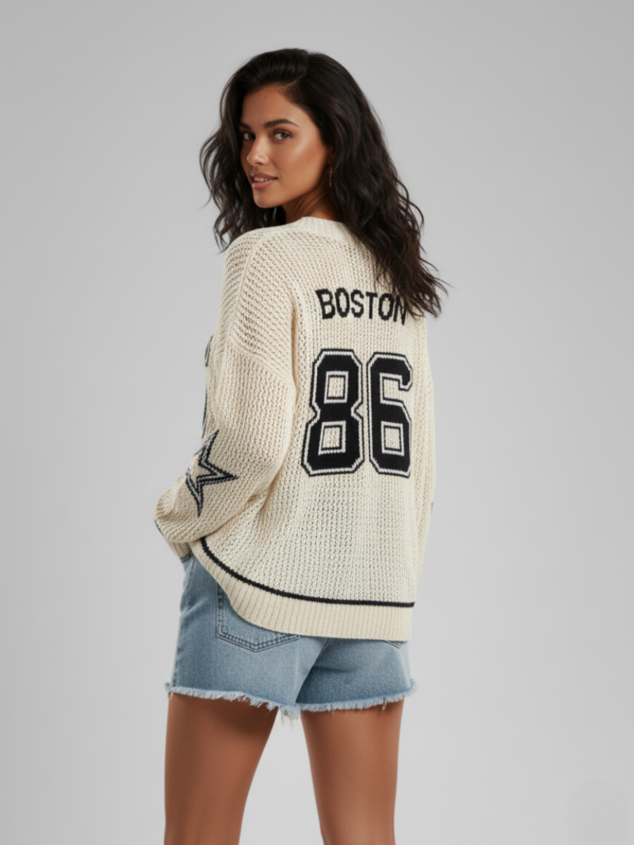 Fishnet Knitted V-Neck Jumper