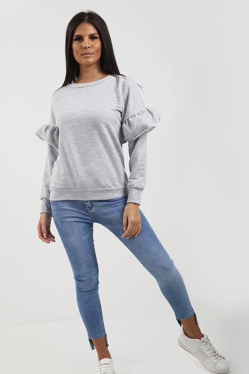 Frill Detail Sleeve Sweatshirt Jumper