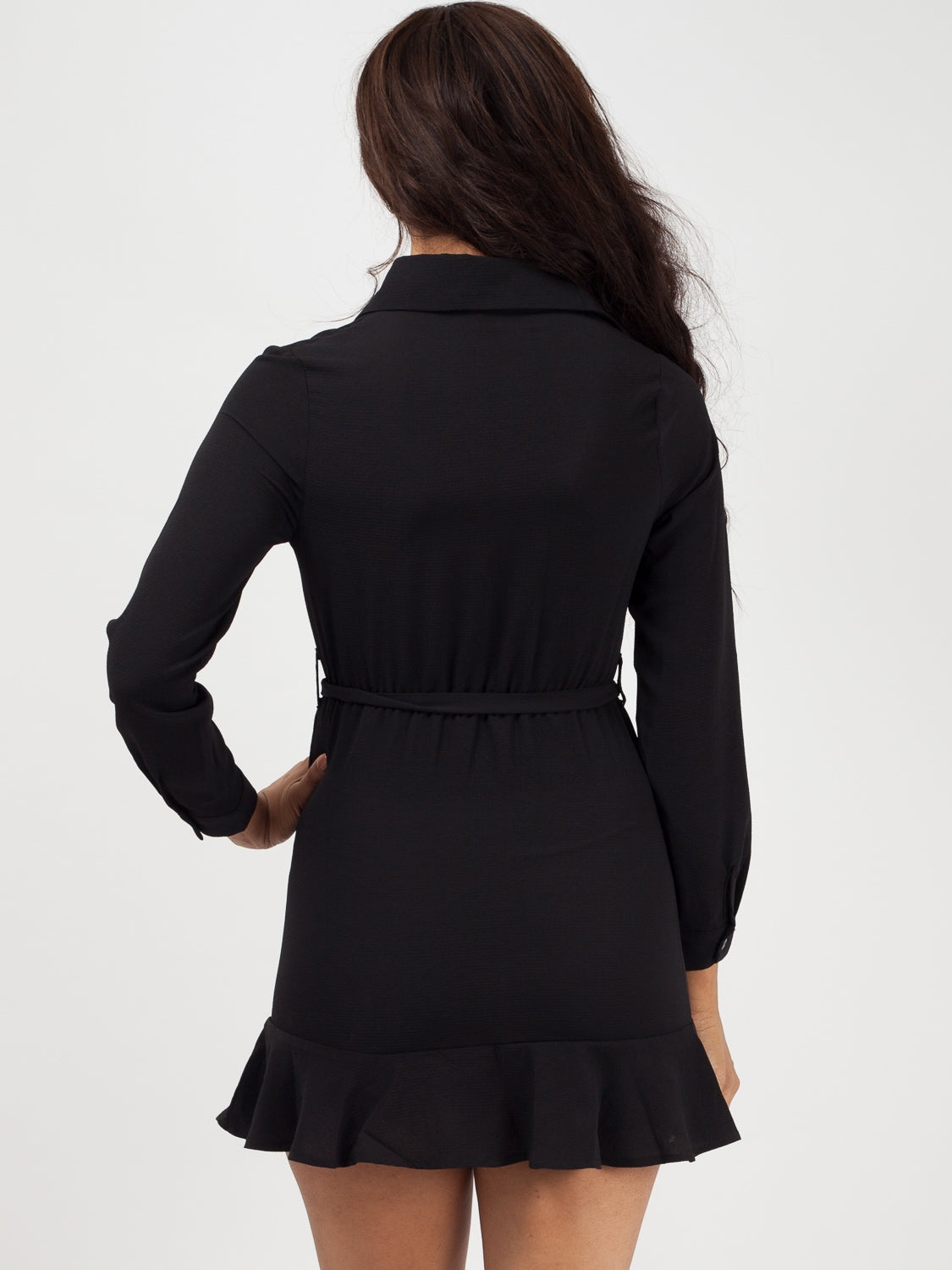 Frill Hem Belted Waist Shirt Dress