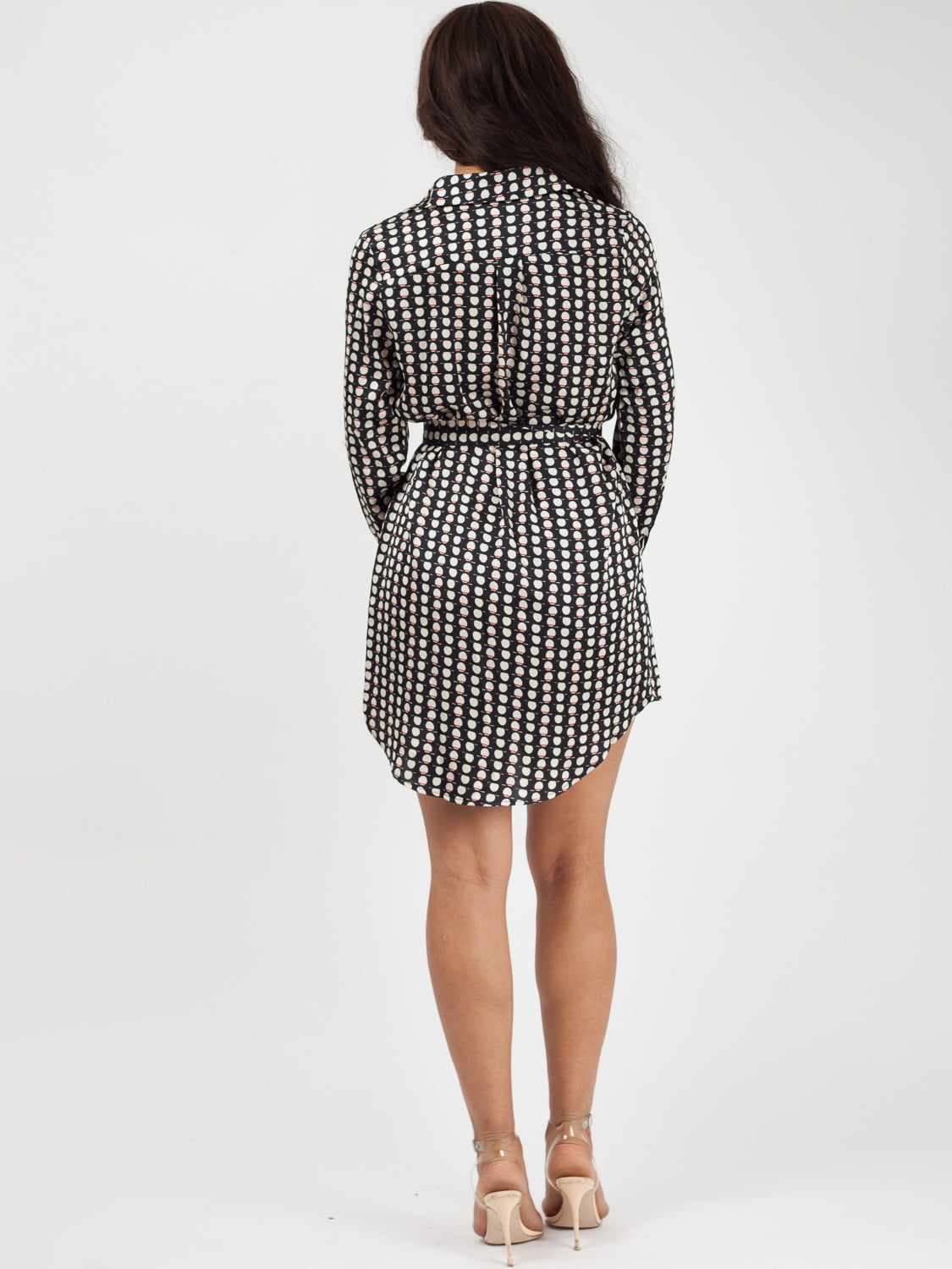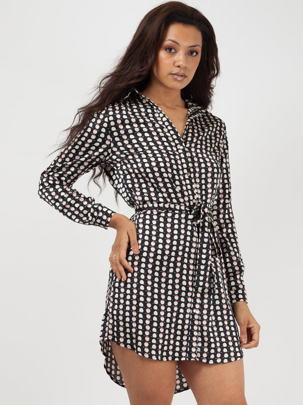 Circle Print Tie Waist Shirt Dress