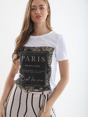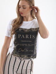 Glitter PARIS Slogan Printed T-Shirt