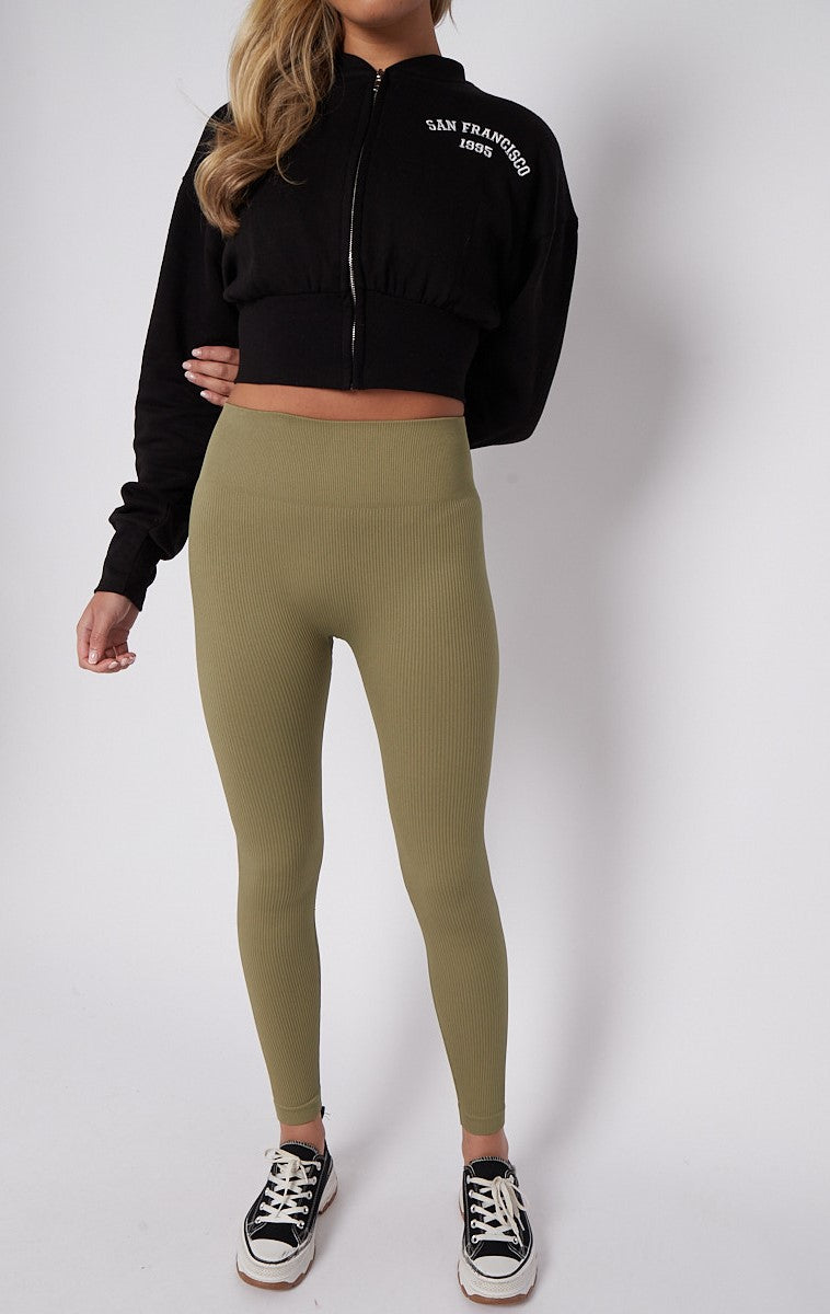 High Waist Stretchy Ribbed Leggings