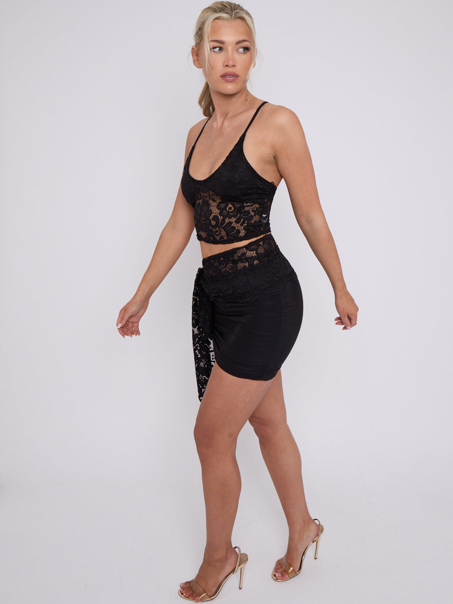 Lace Detail Slinky Crop Top & Mini Skirt Co-ord