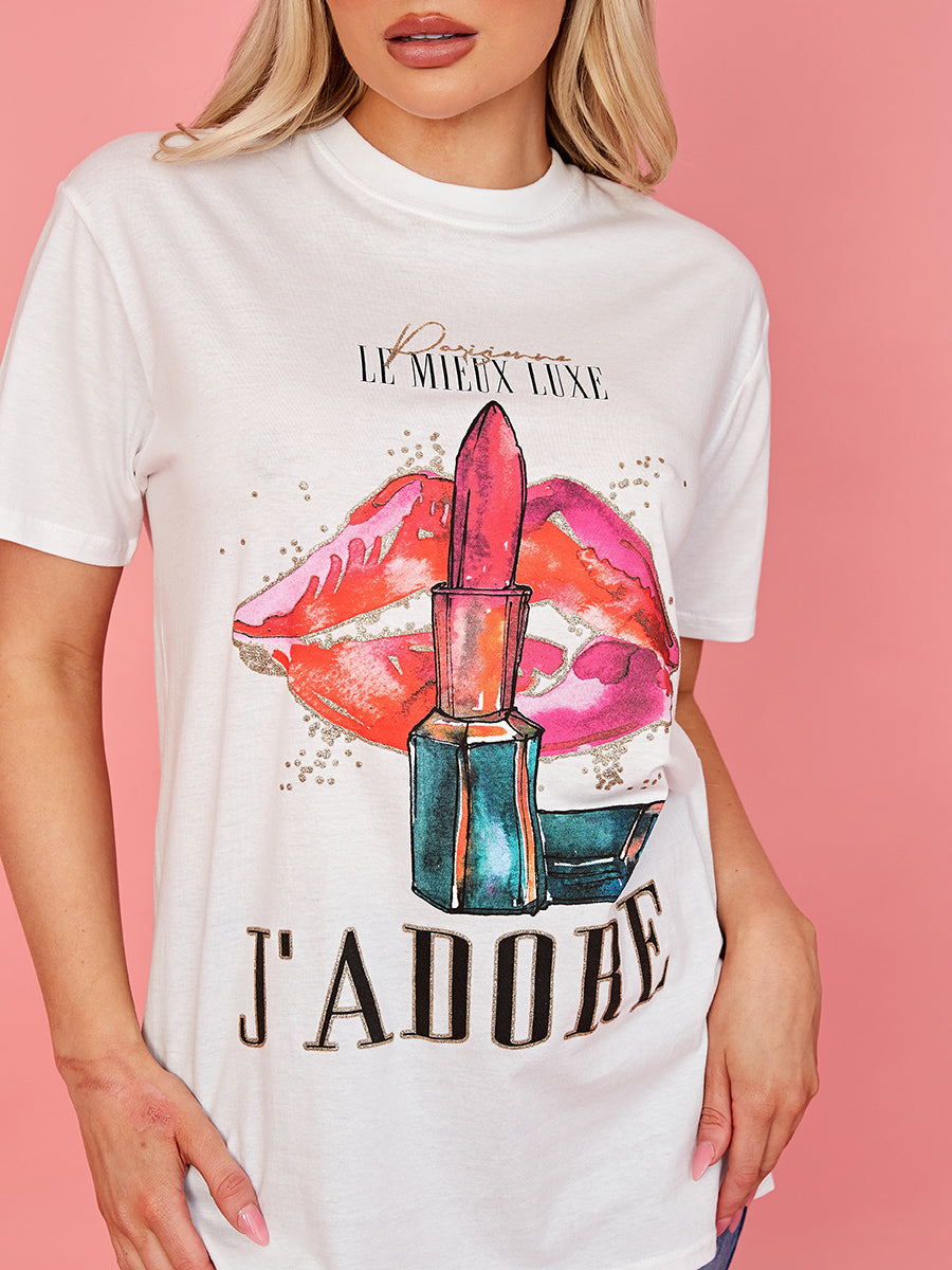 Lipstick J'adore Graphic Glitter Detail T-Shirt