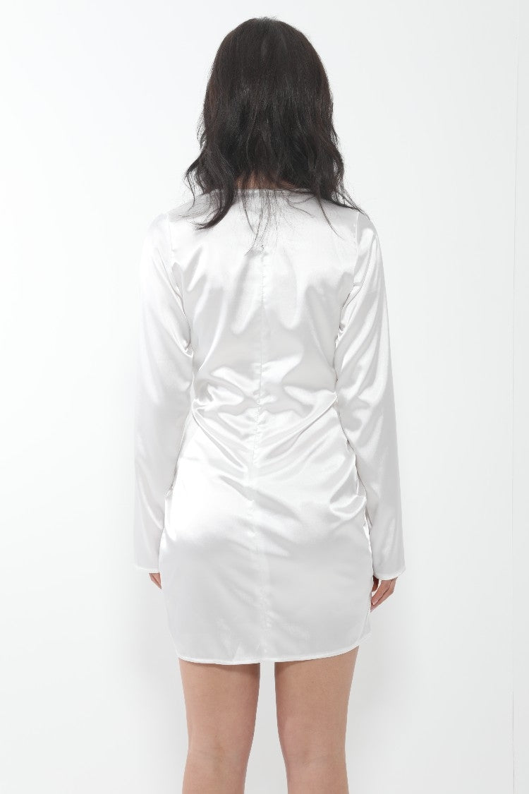 Long Sleeve Twist Front Satin Dress