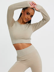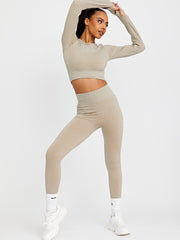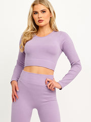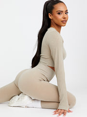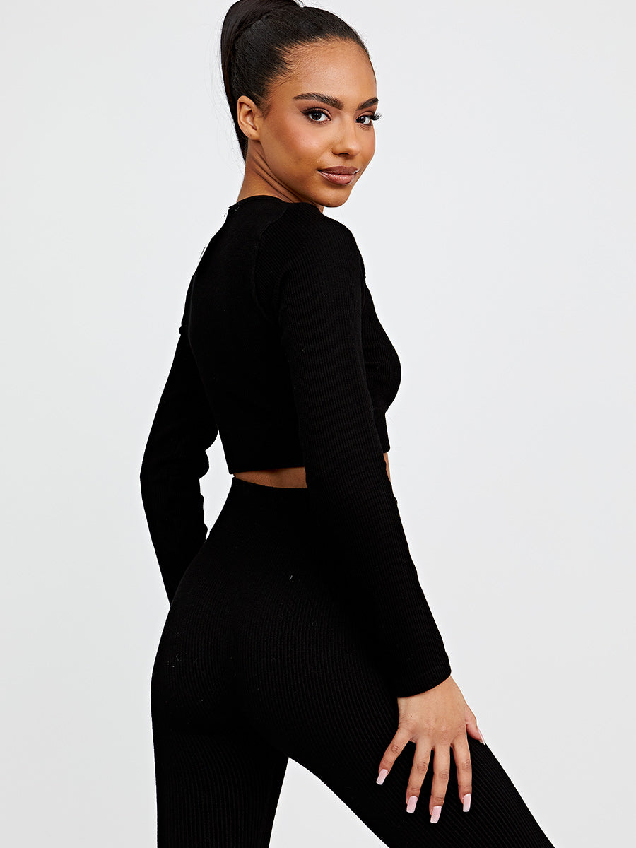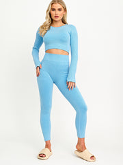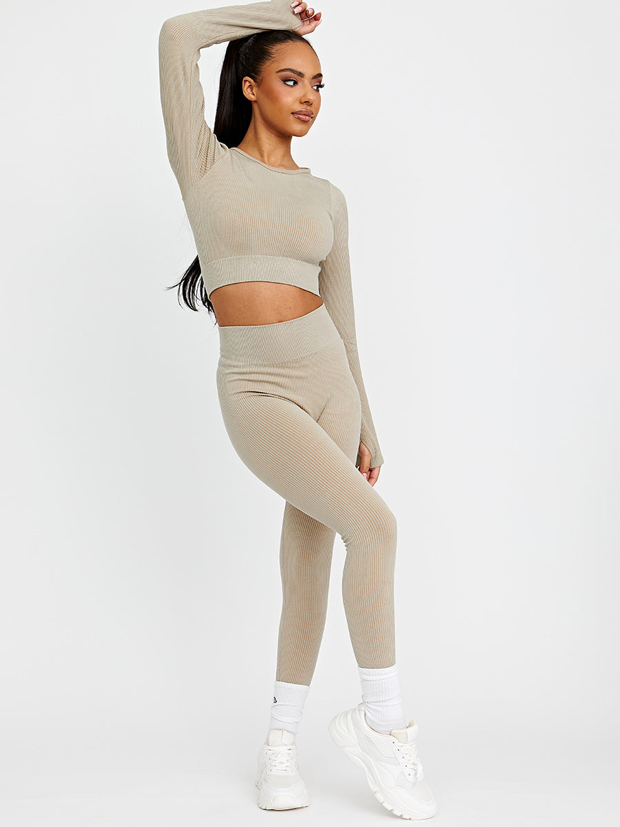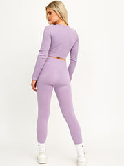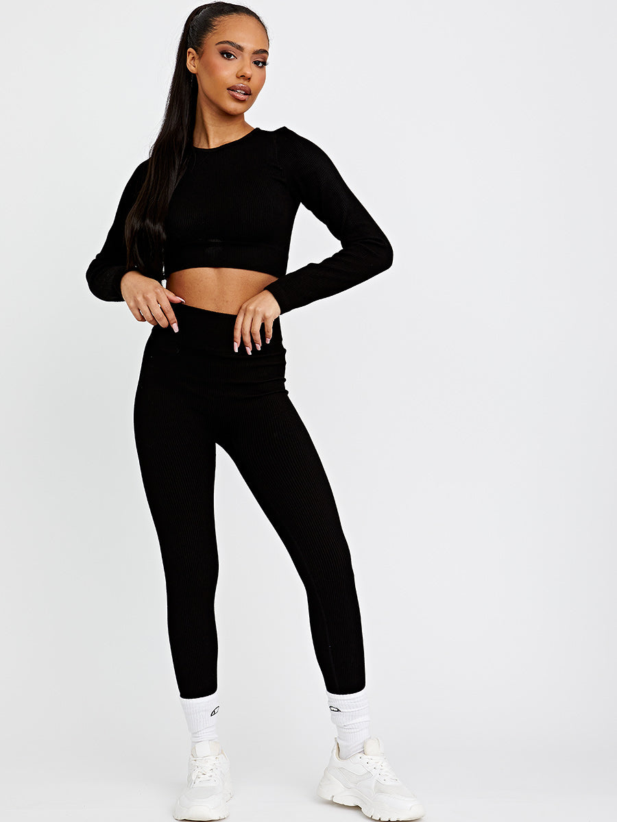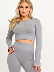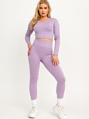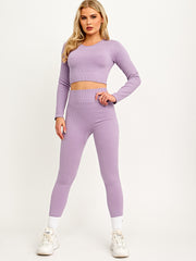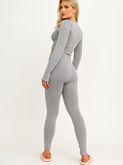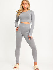 Long Sleeves Ribbed Crop Top & Leggings Co-ord