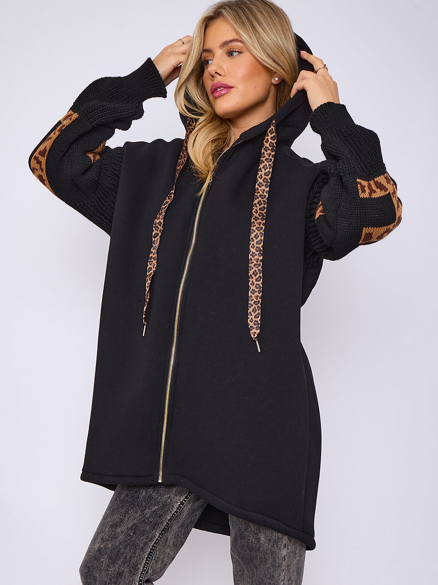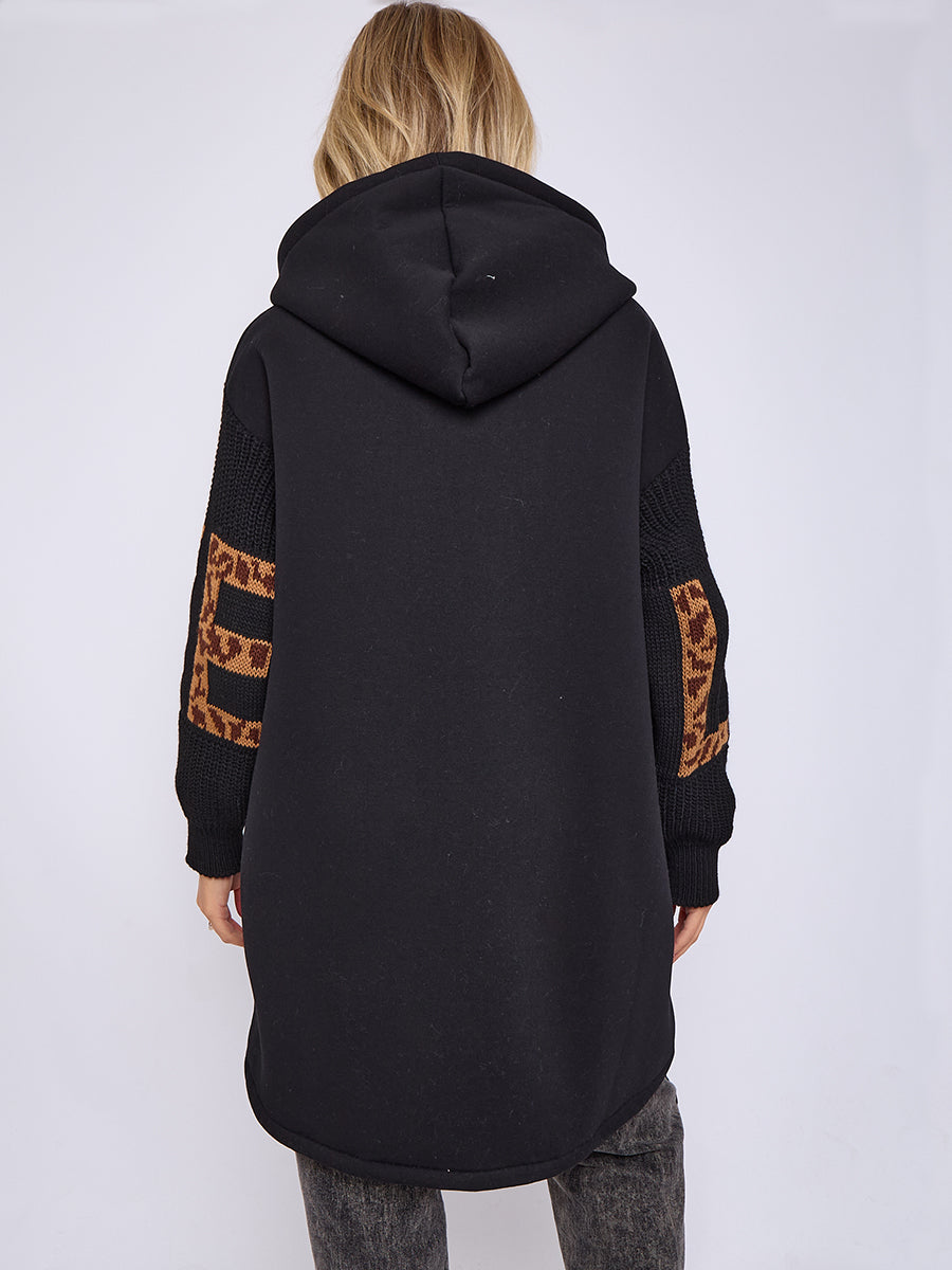 Love Knitted Sleeve Detail Oversized Hoodie Dress