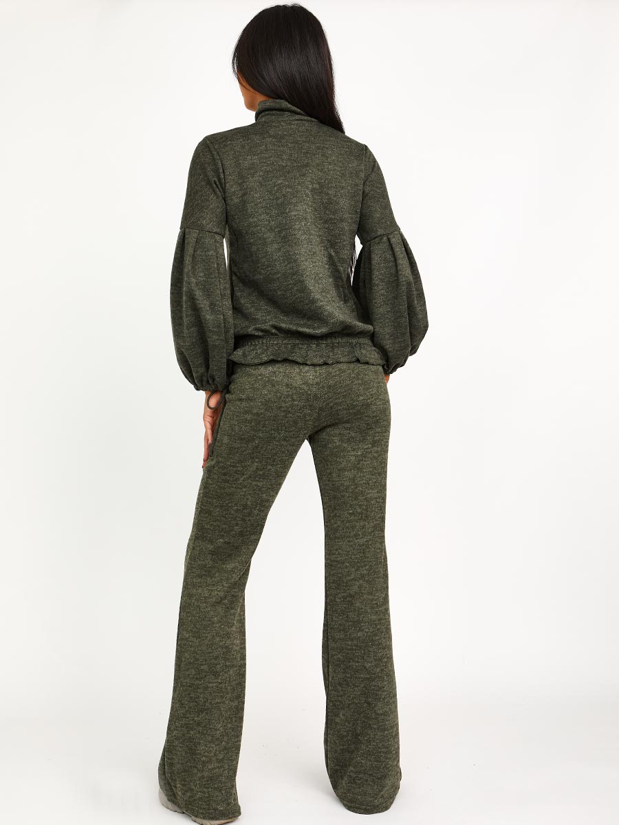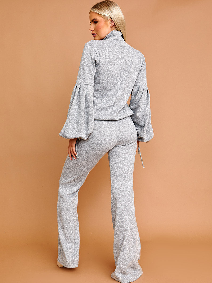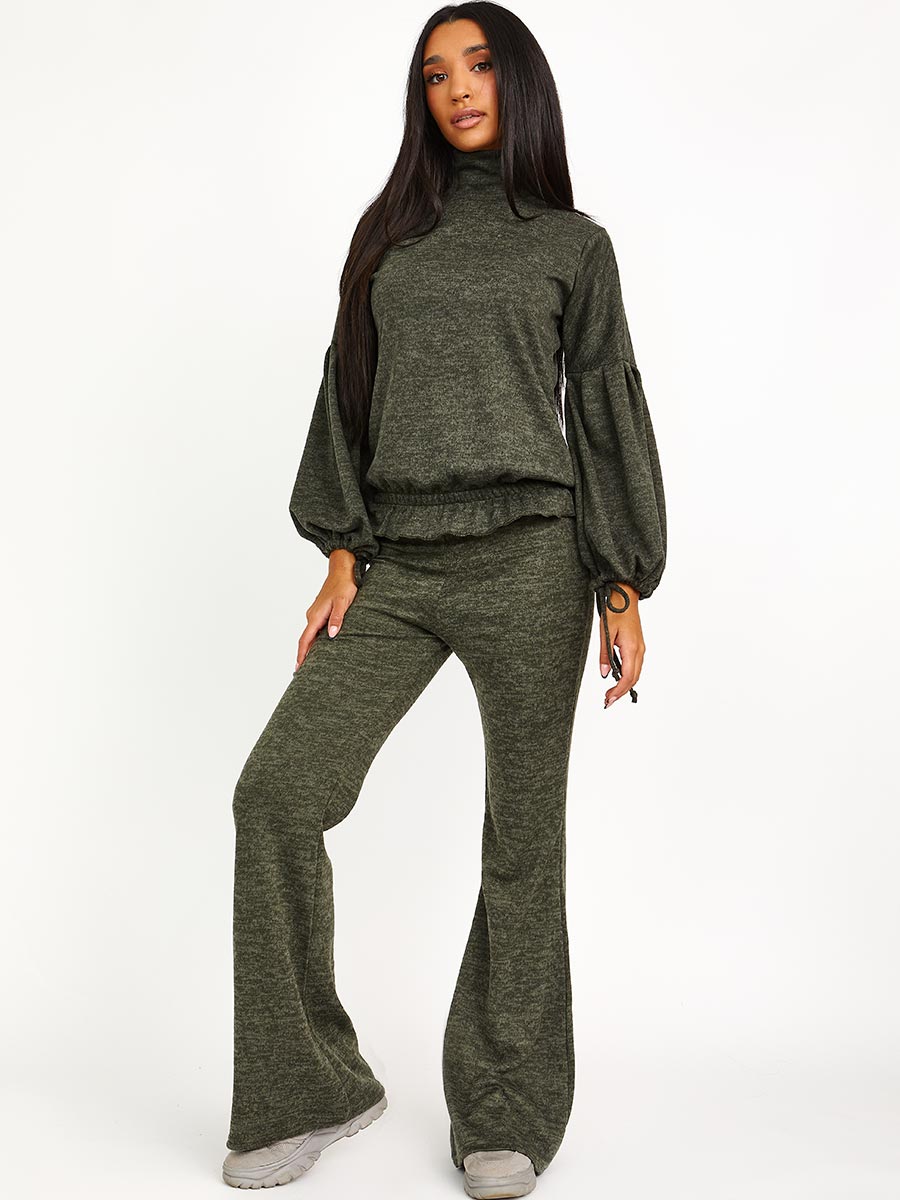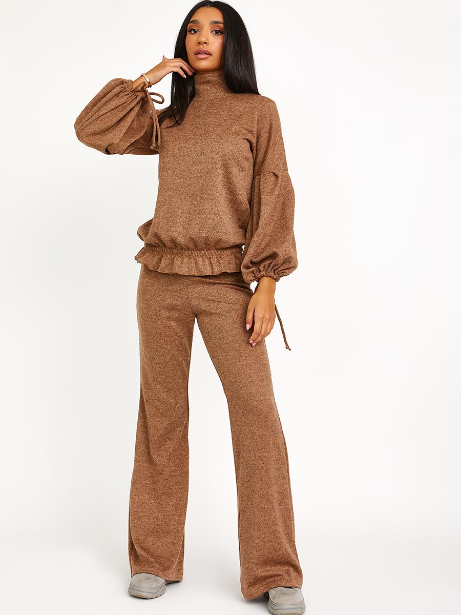 Melange Knit Balloon Sleeve Top & Flare Trouser Co-ord