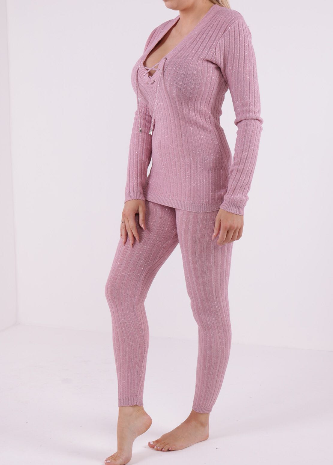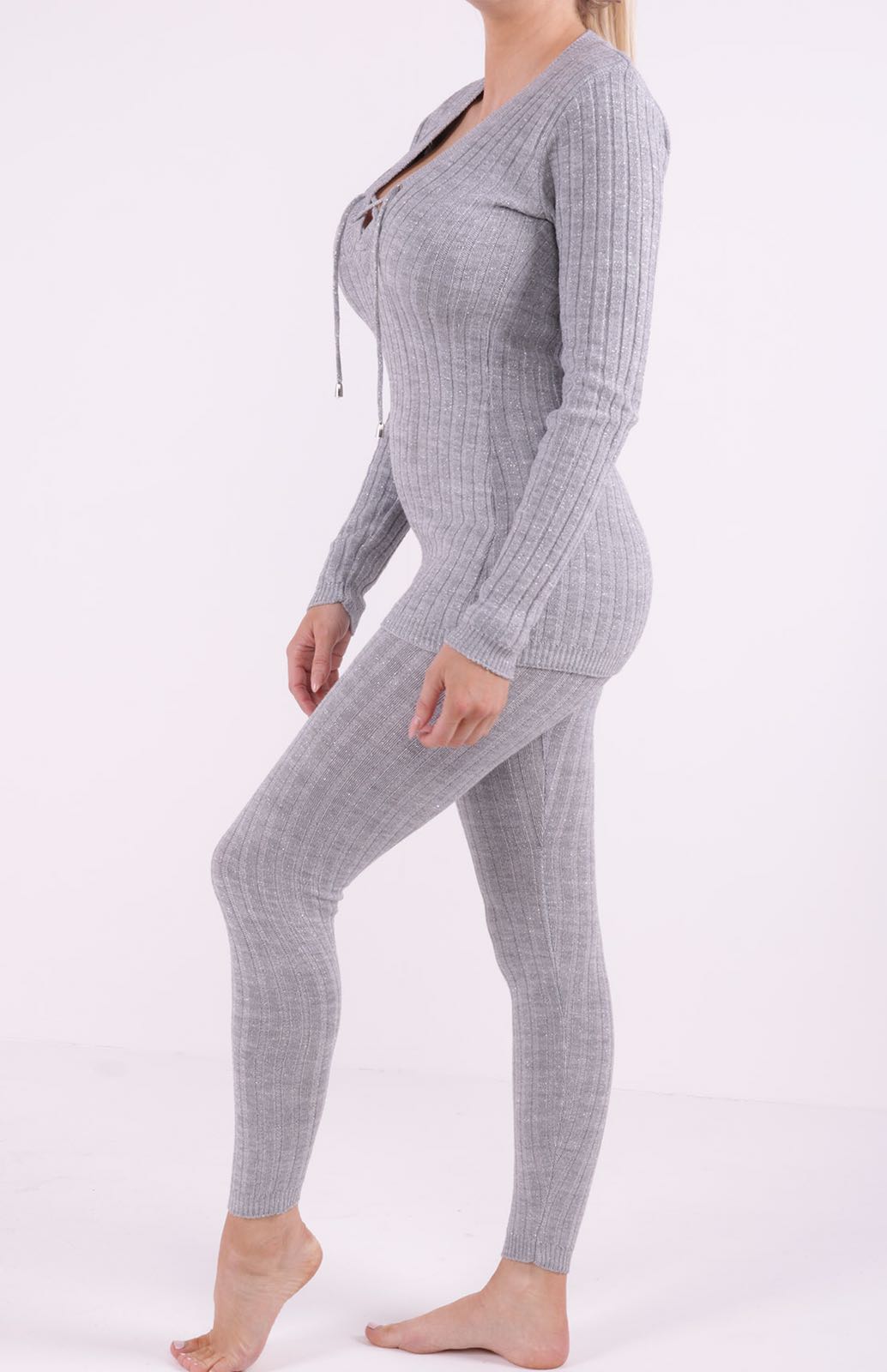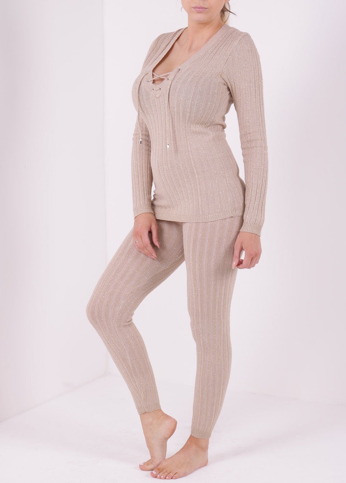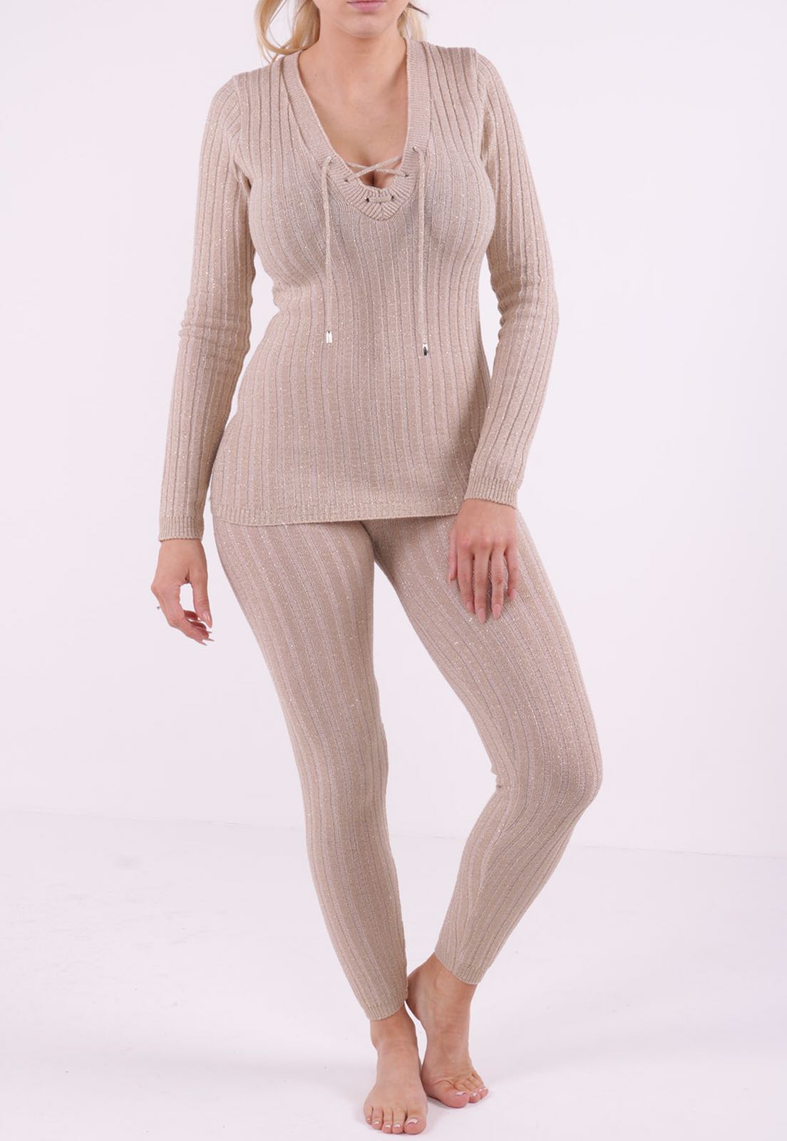 Metallic Lurex Ribbed Knitted Loungewear Coordinate