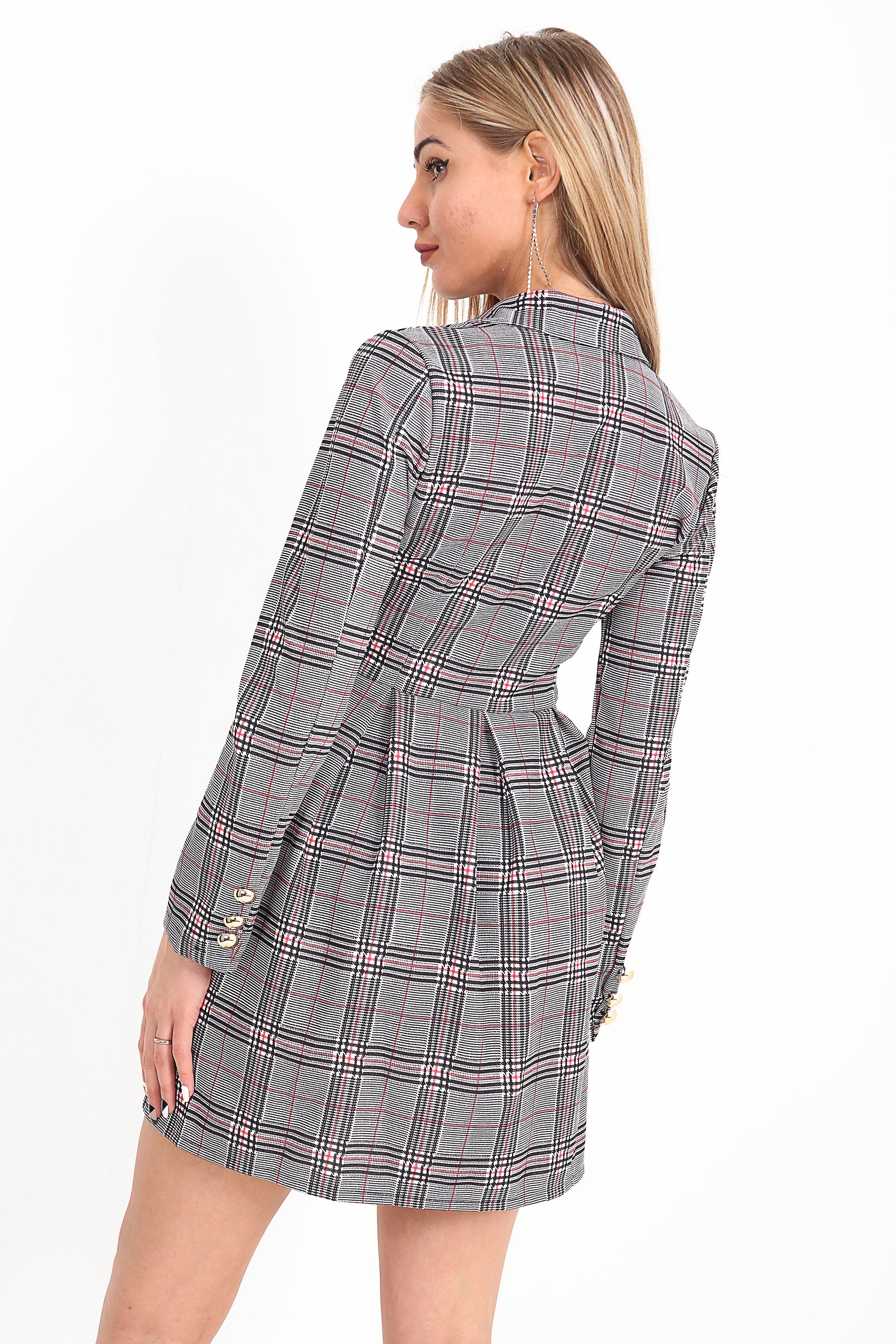 Multi Check Longline Blazer Dress