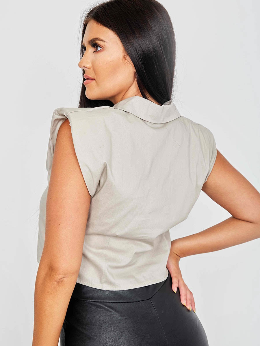 Padded Shoulder Cropped Shirt Blouse