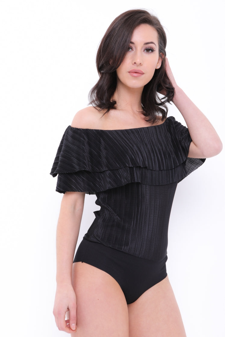 Pleated Frill Bardot Bodysuit