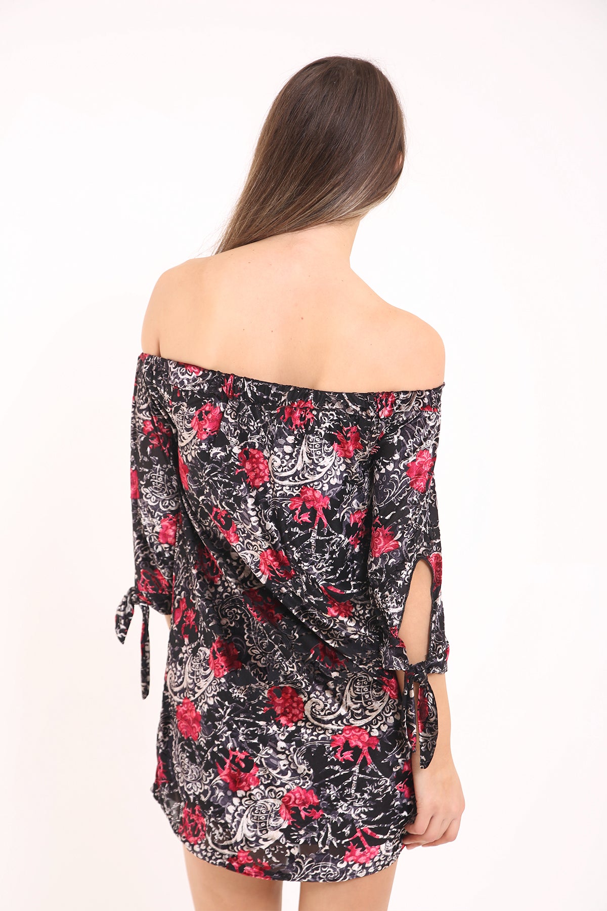 Printed Velour Shift Bardot Dress