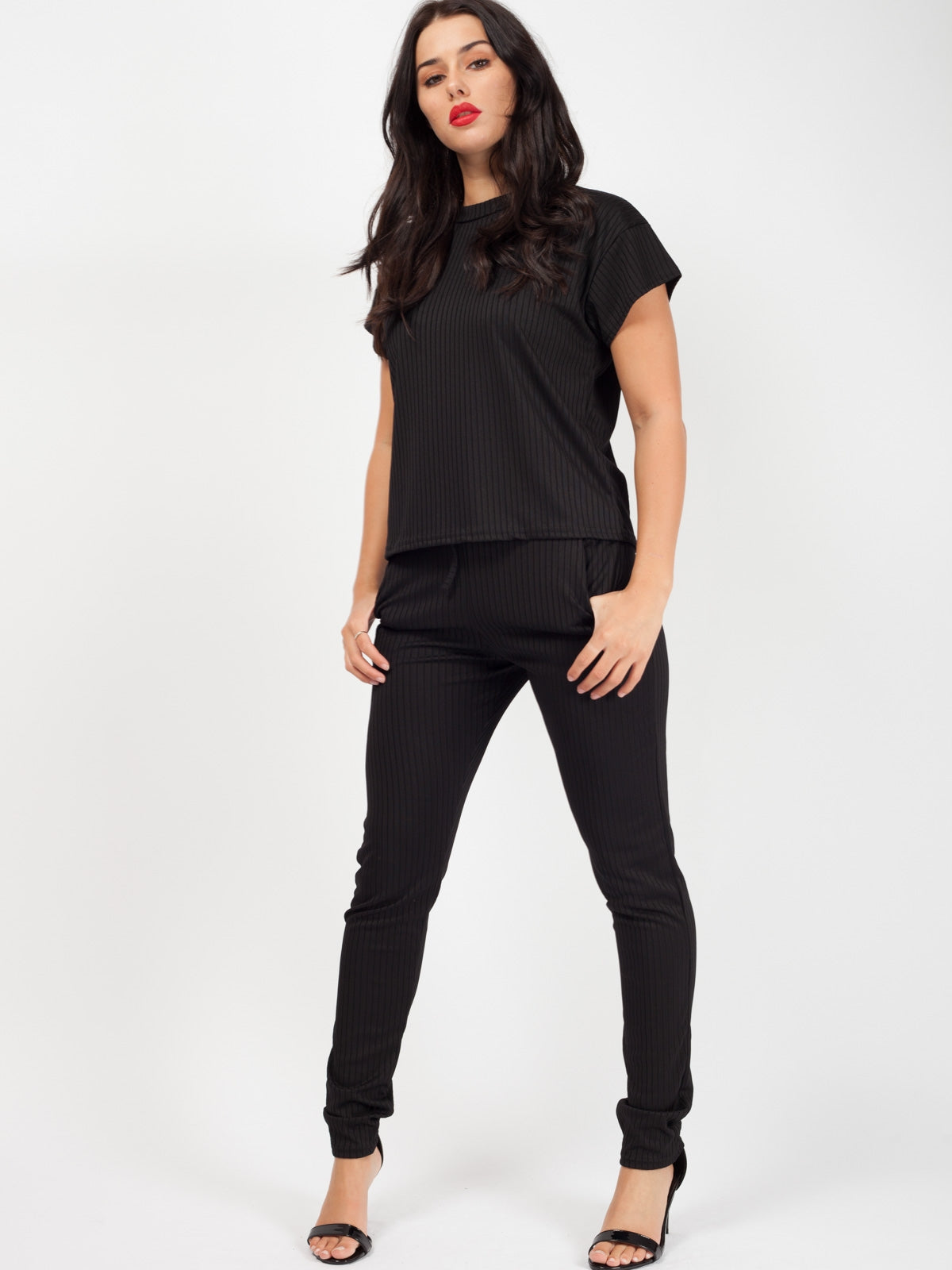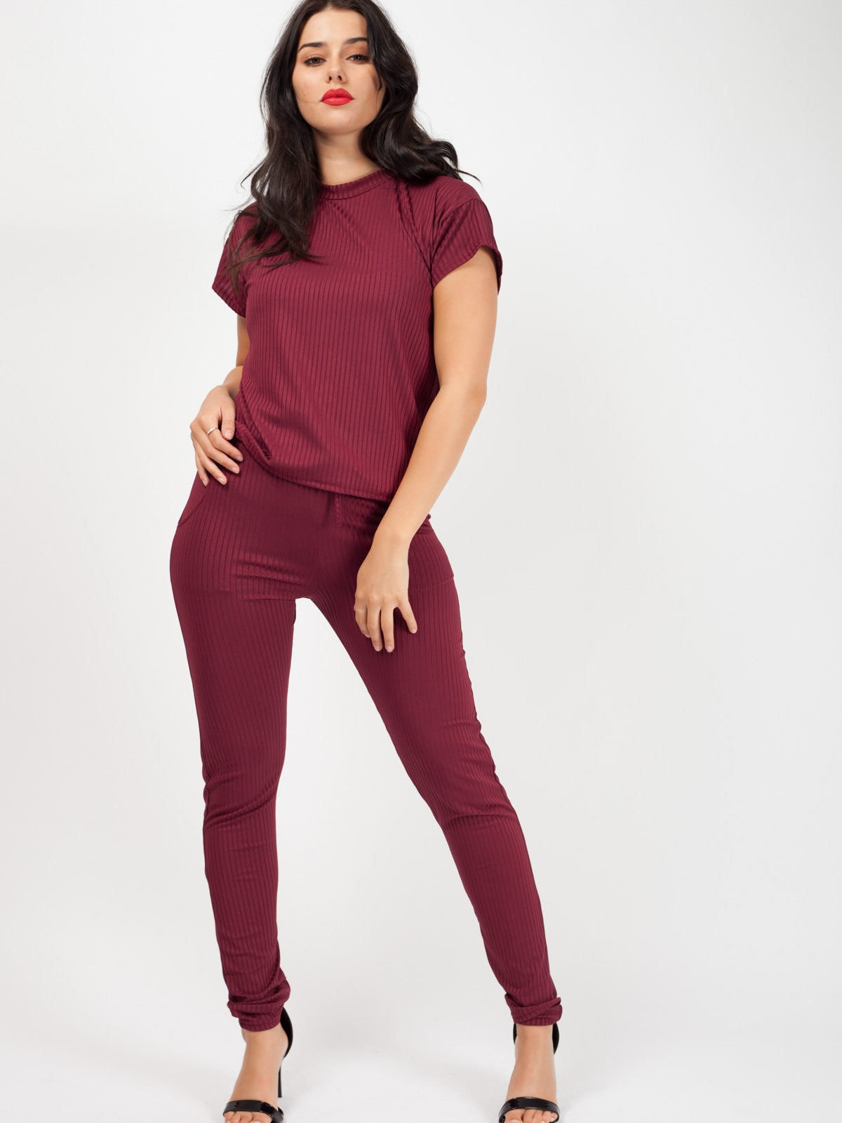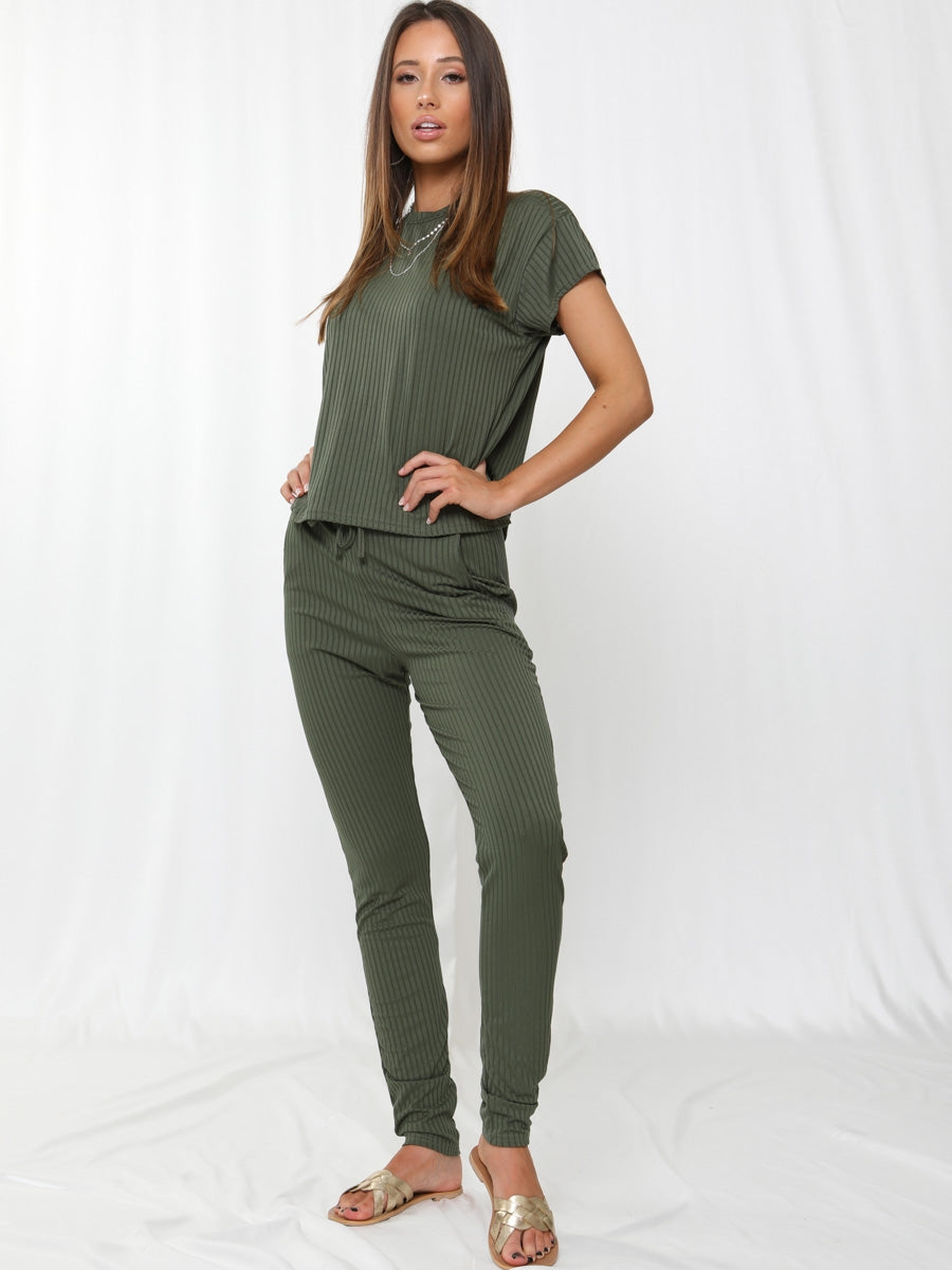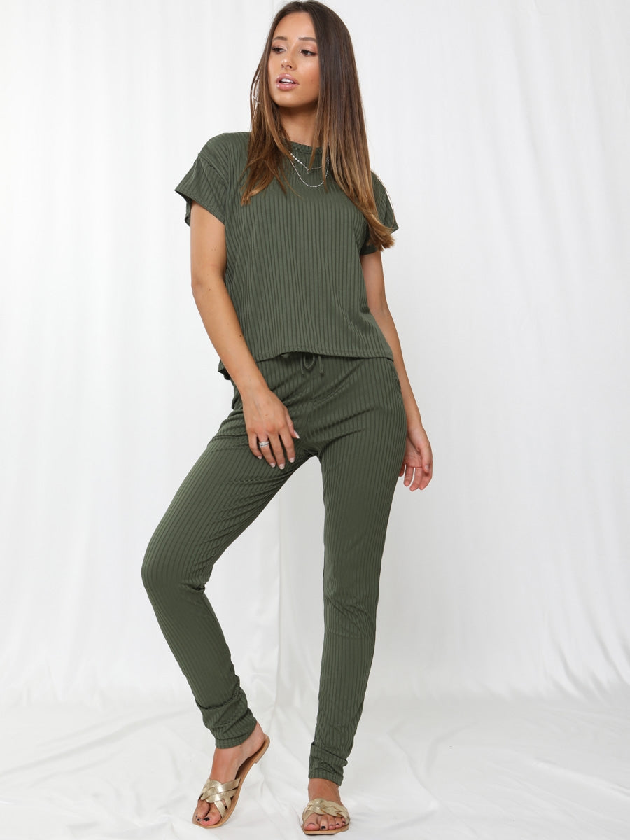 Ribbed Short Sleeve Boxy Loungewear Co-ord