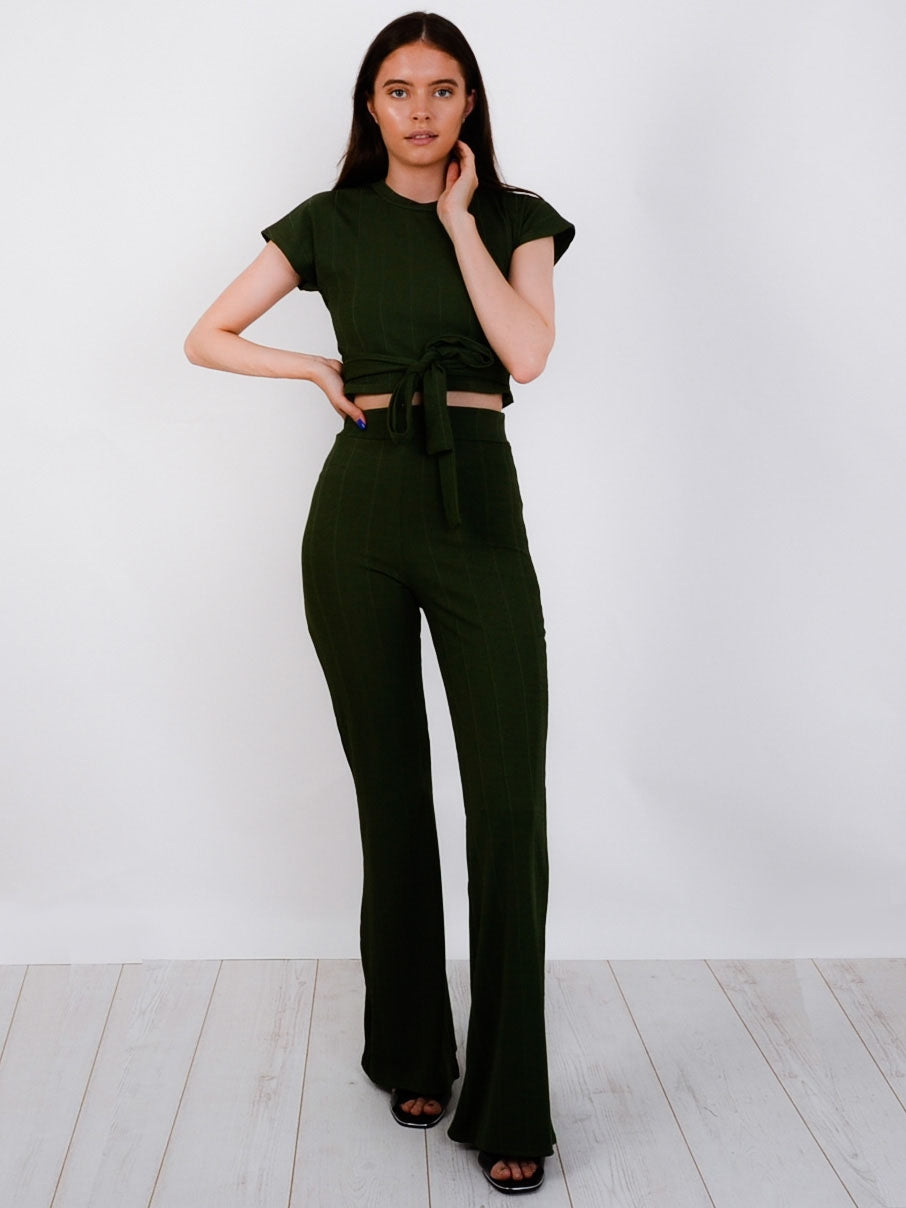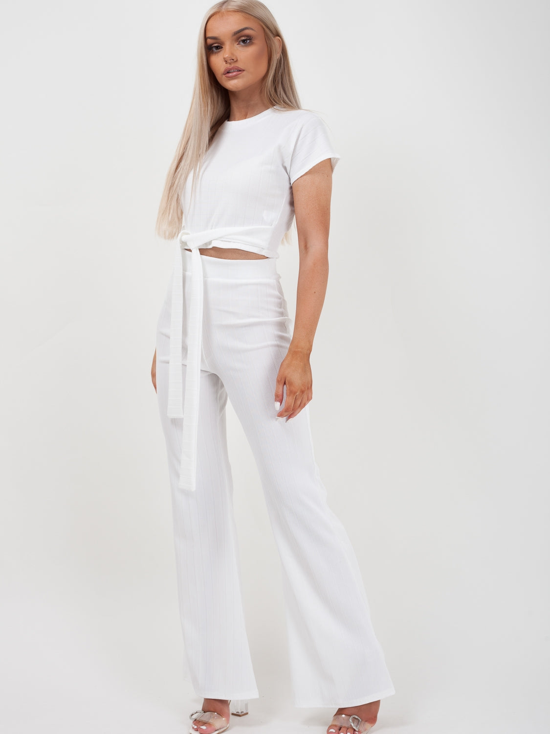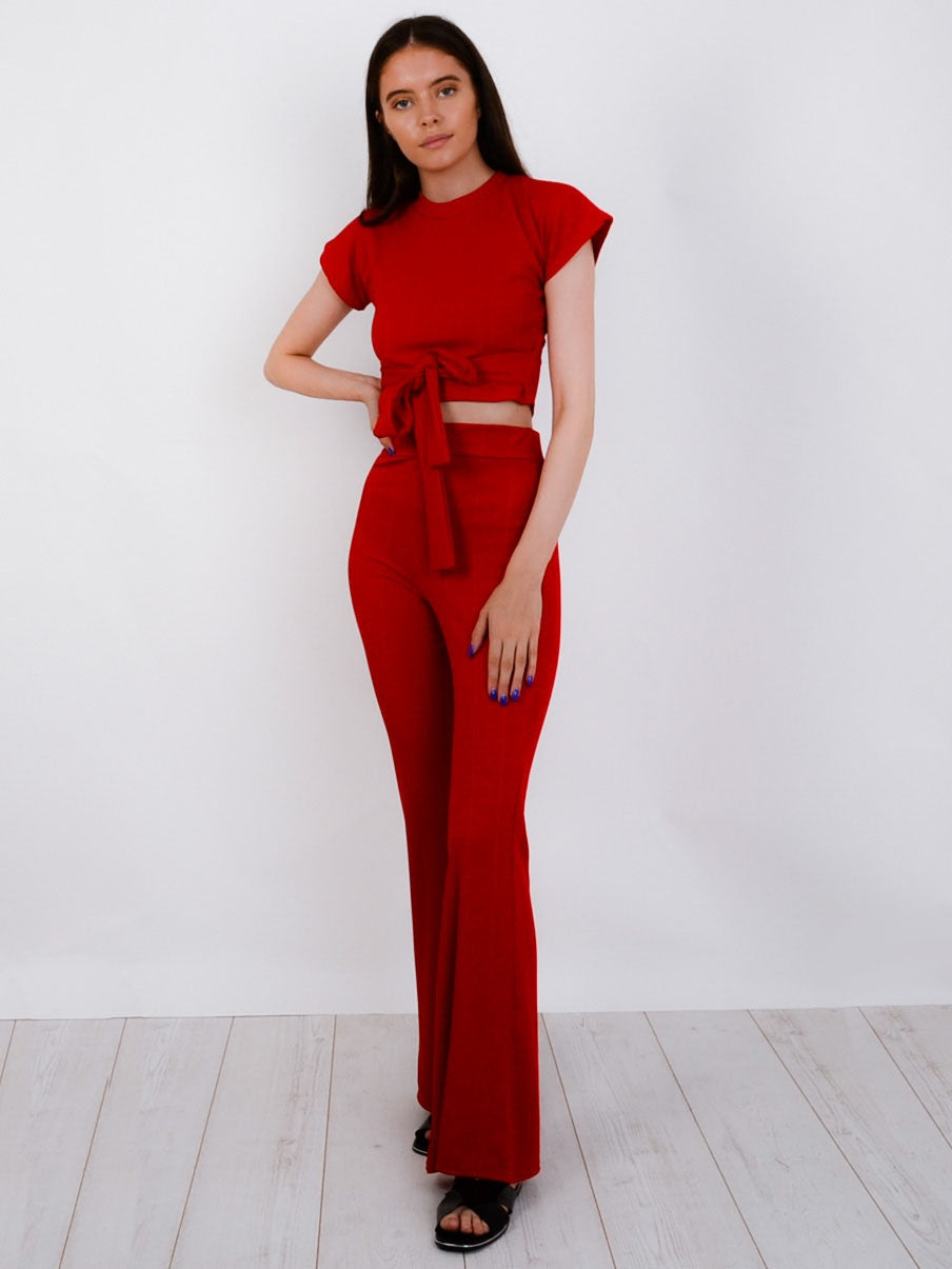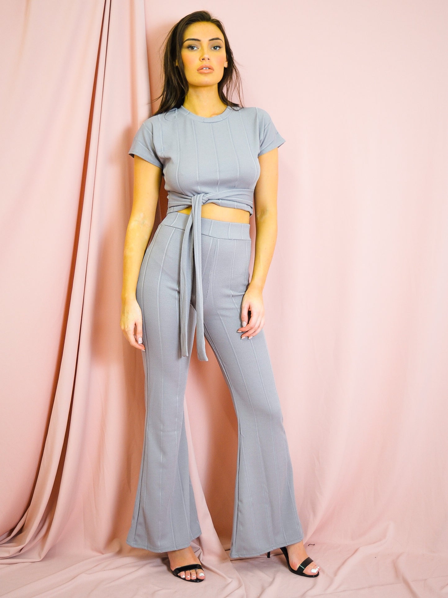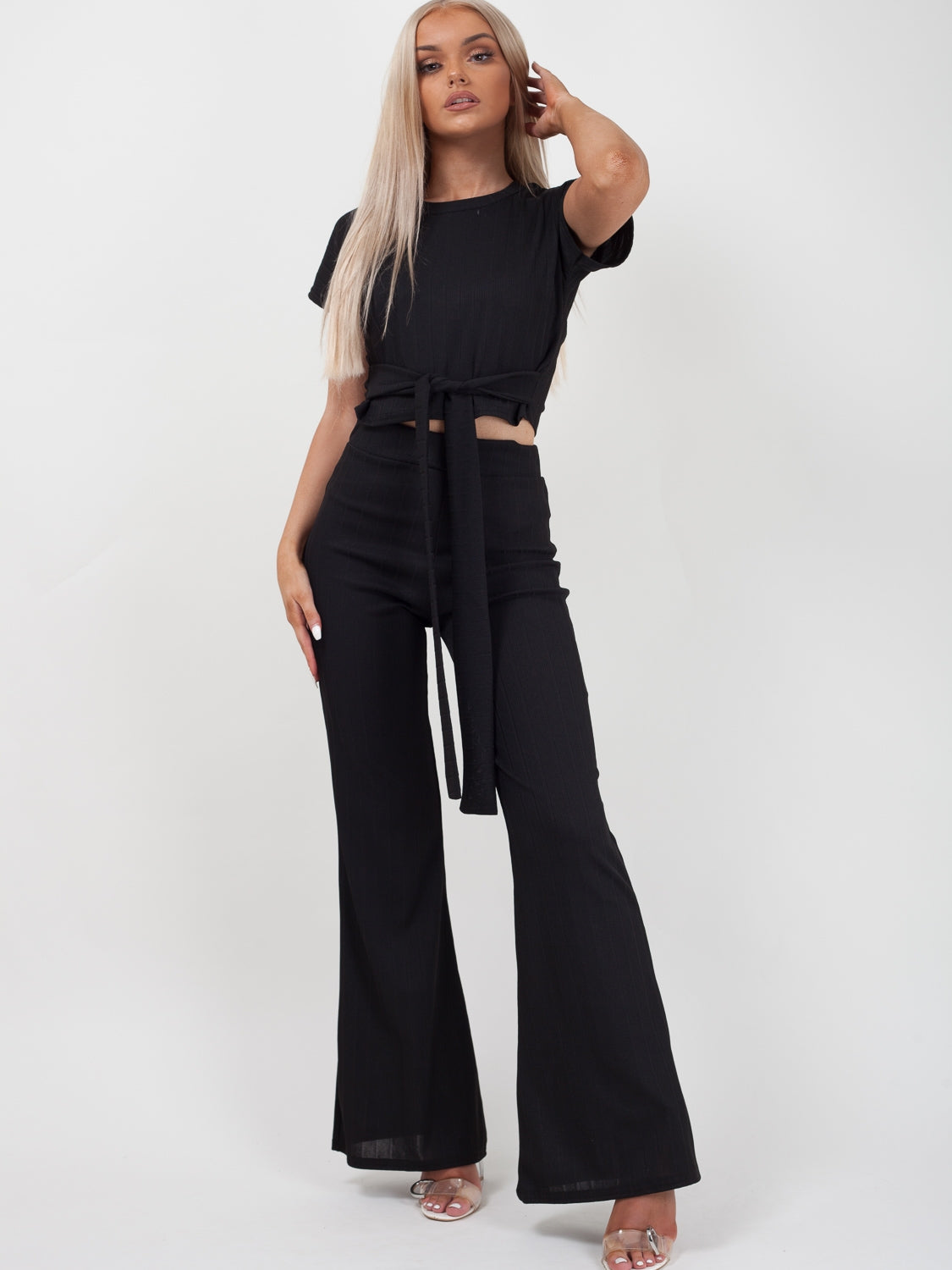 Ribbed Tie Knot Crop Top & Trouser Co-ord