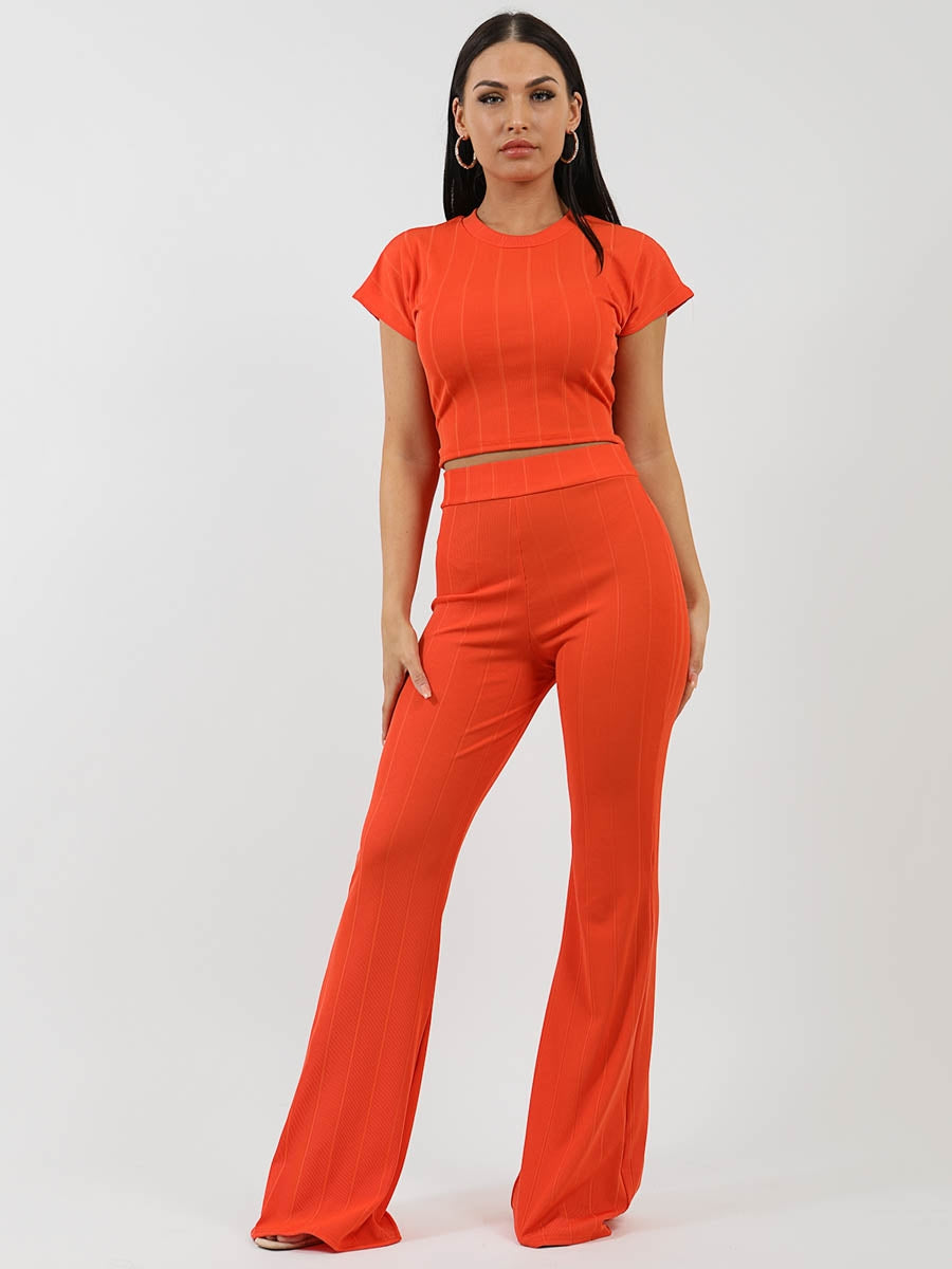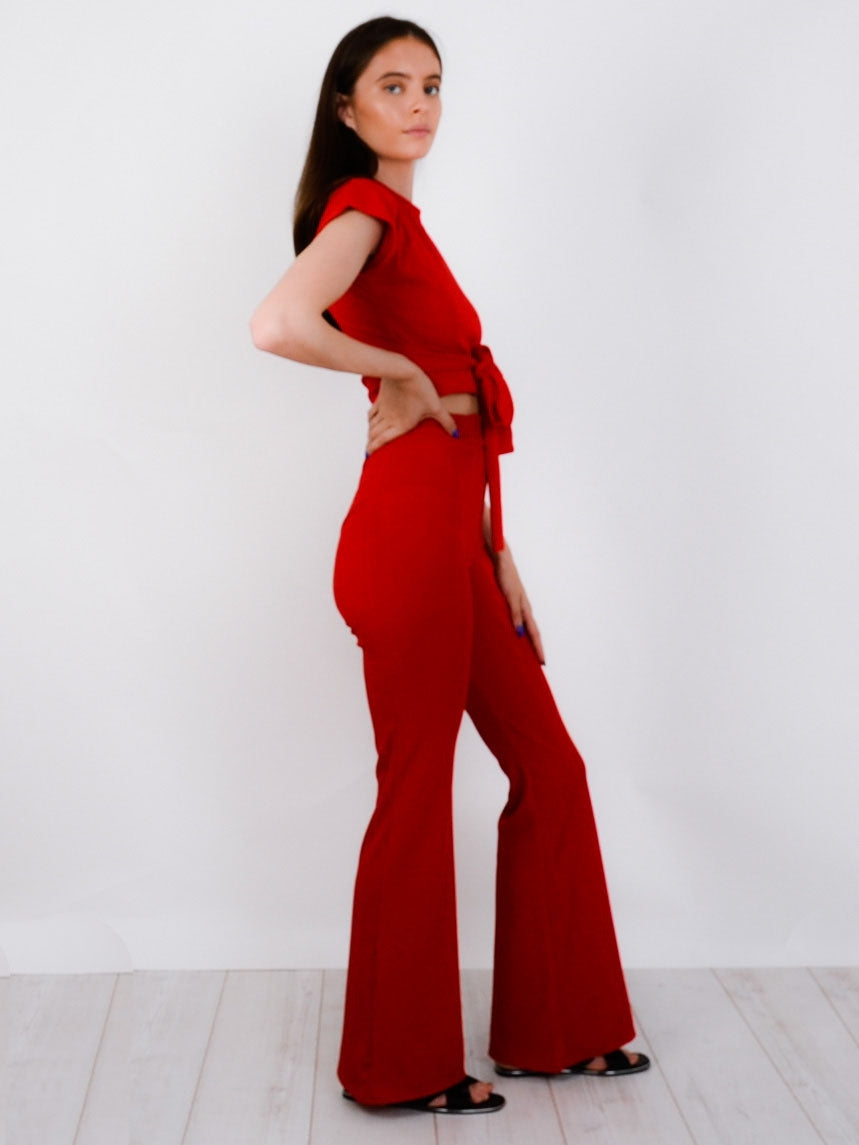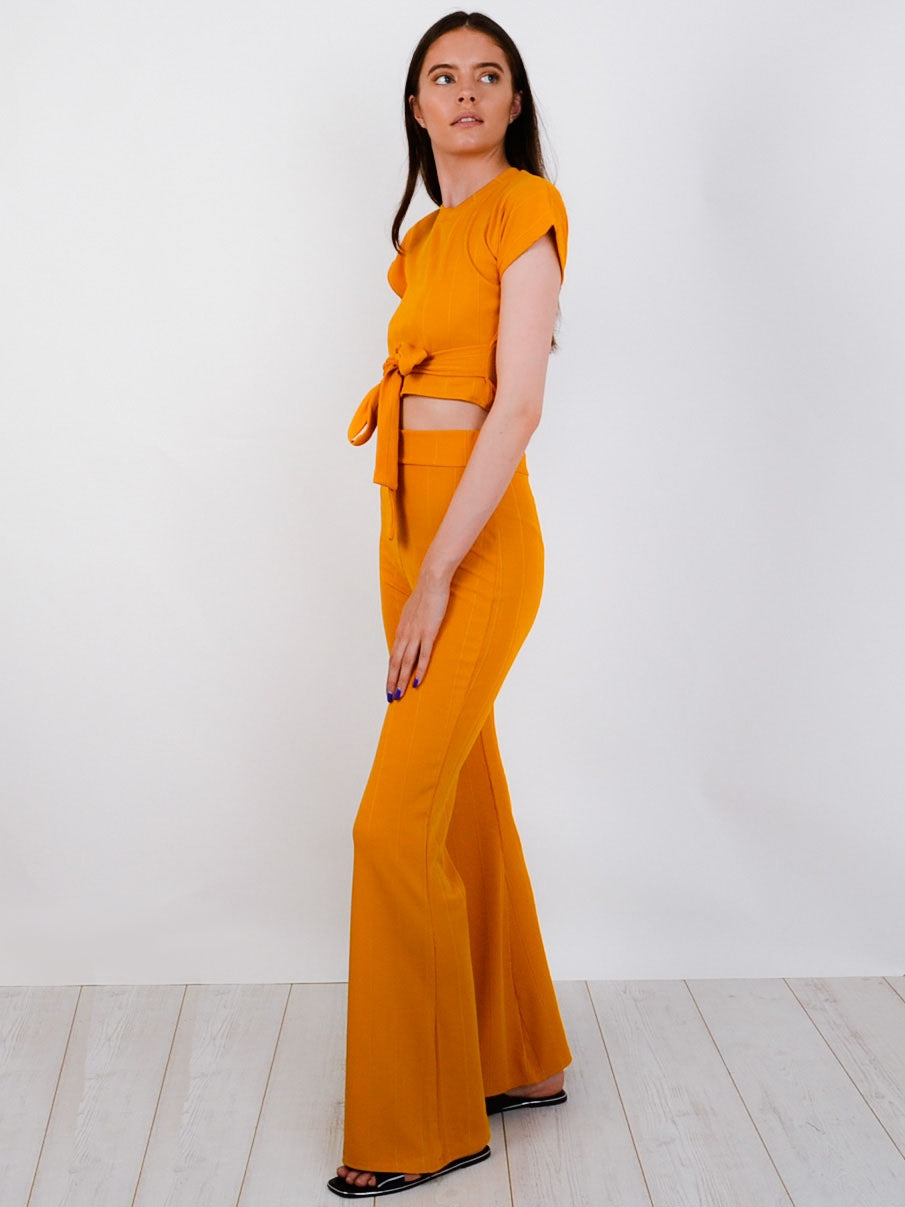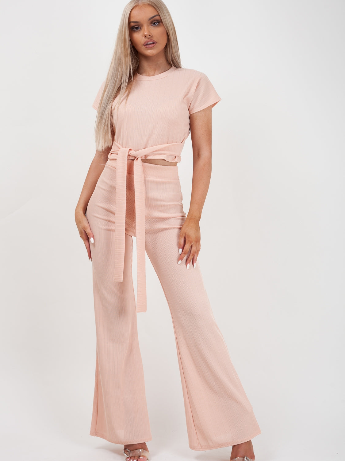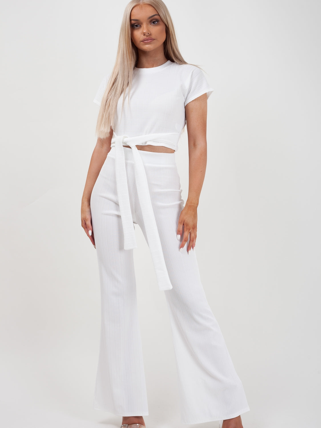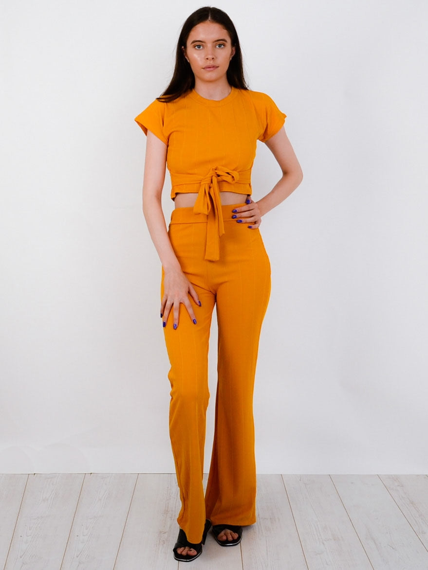 Ribbed Tie Knot Crop Top & Trouser Co-ord