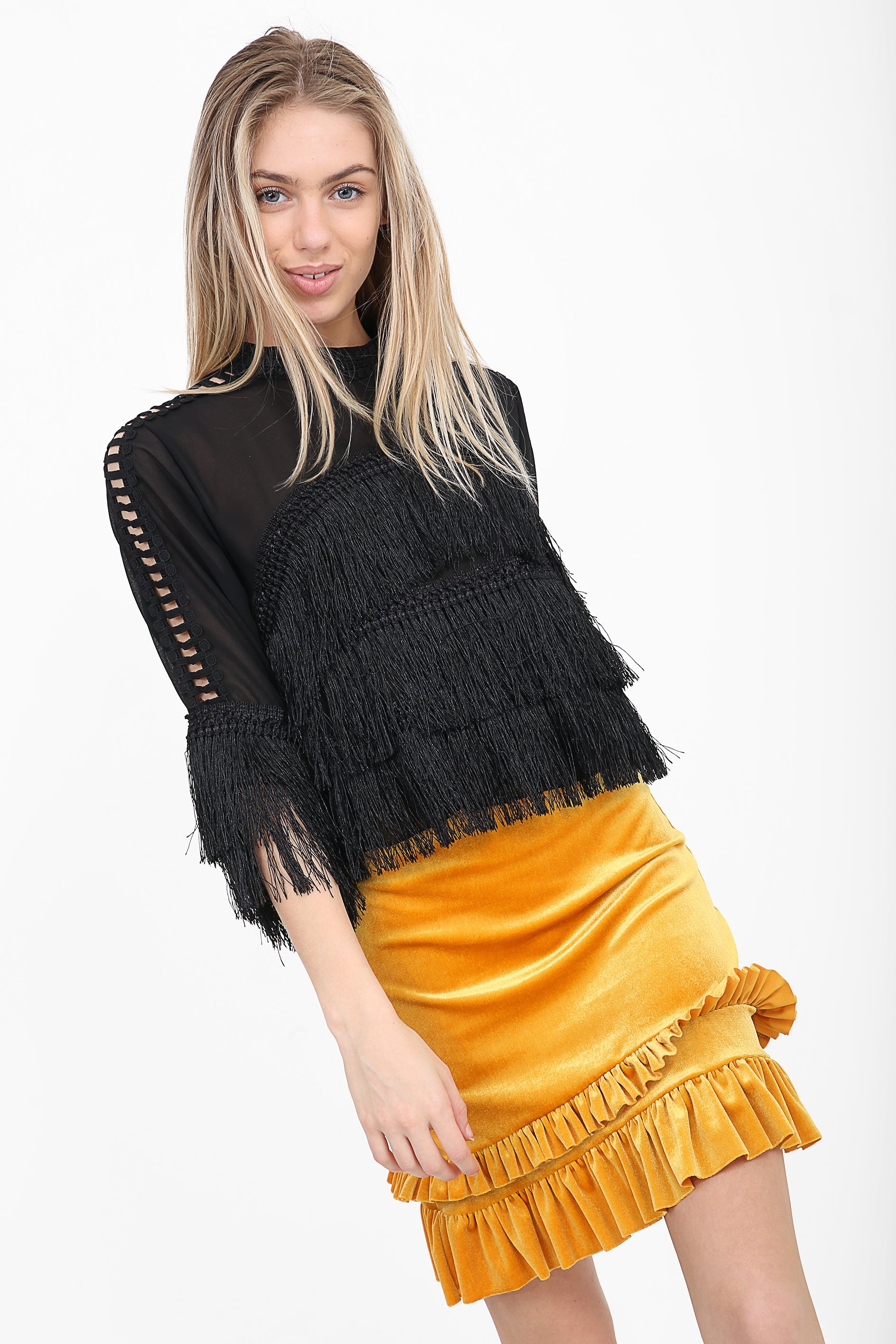 Ruched Frill Hem Velvet Mini Skirt