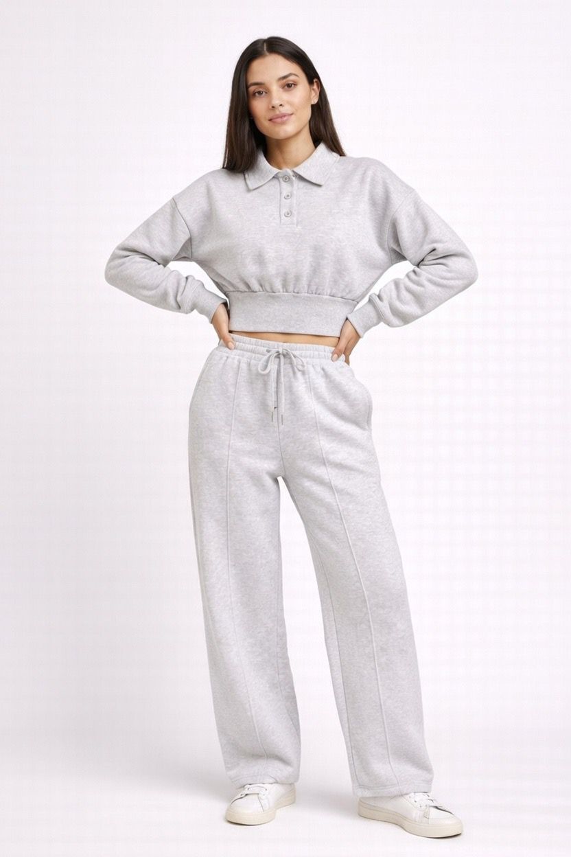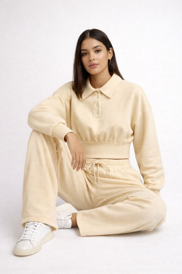 Buttoned Collar Top & Fleece Trouser Co-ord