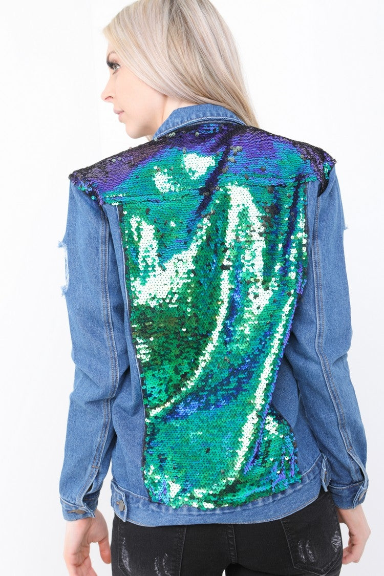 Sequined Distressed Denim Jacket