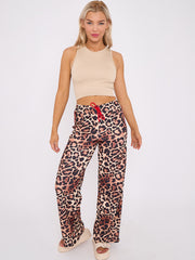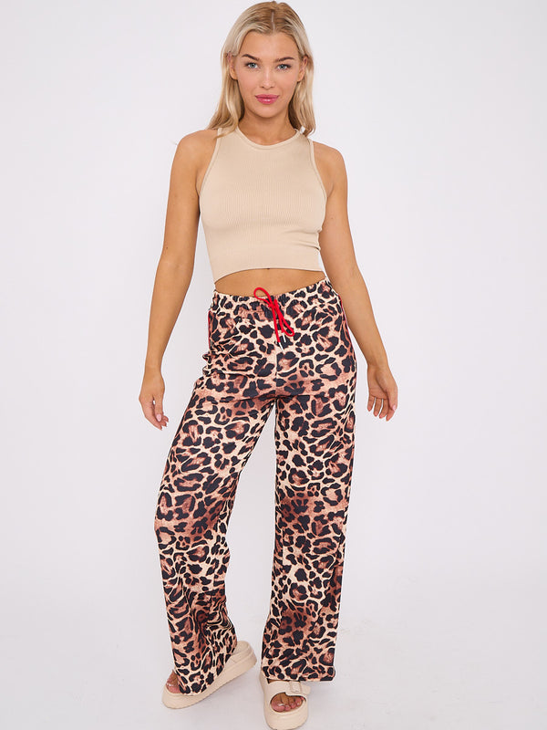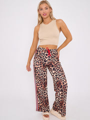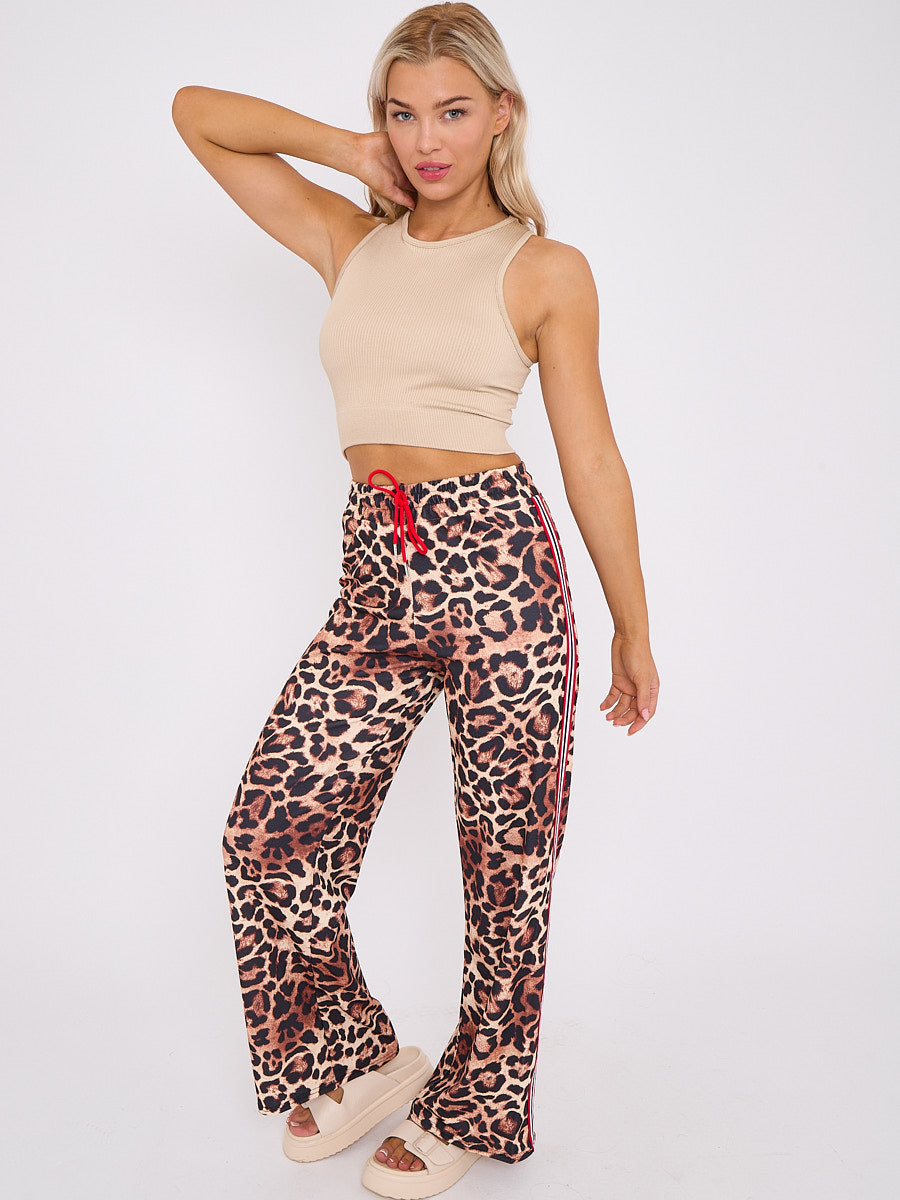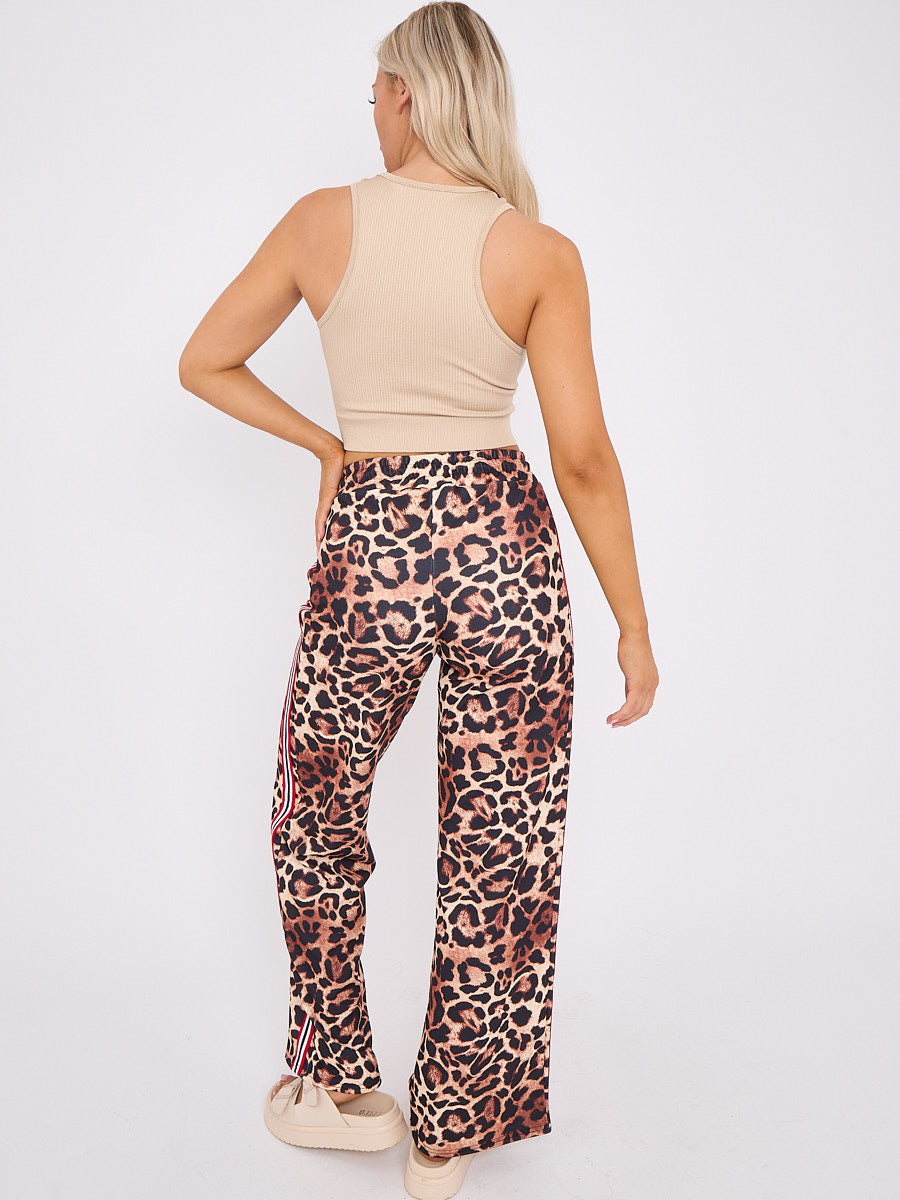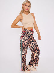Side Stripe Leopard Print Straight Leg Trousers