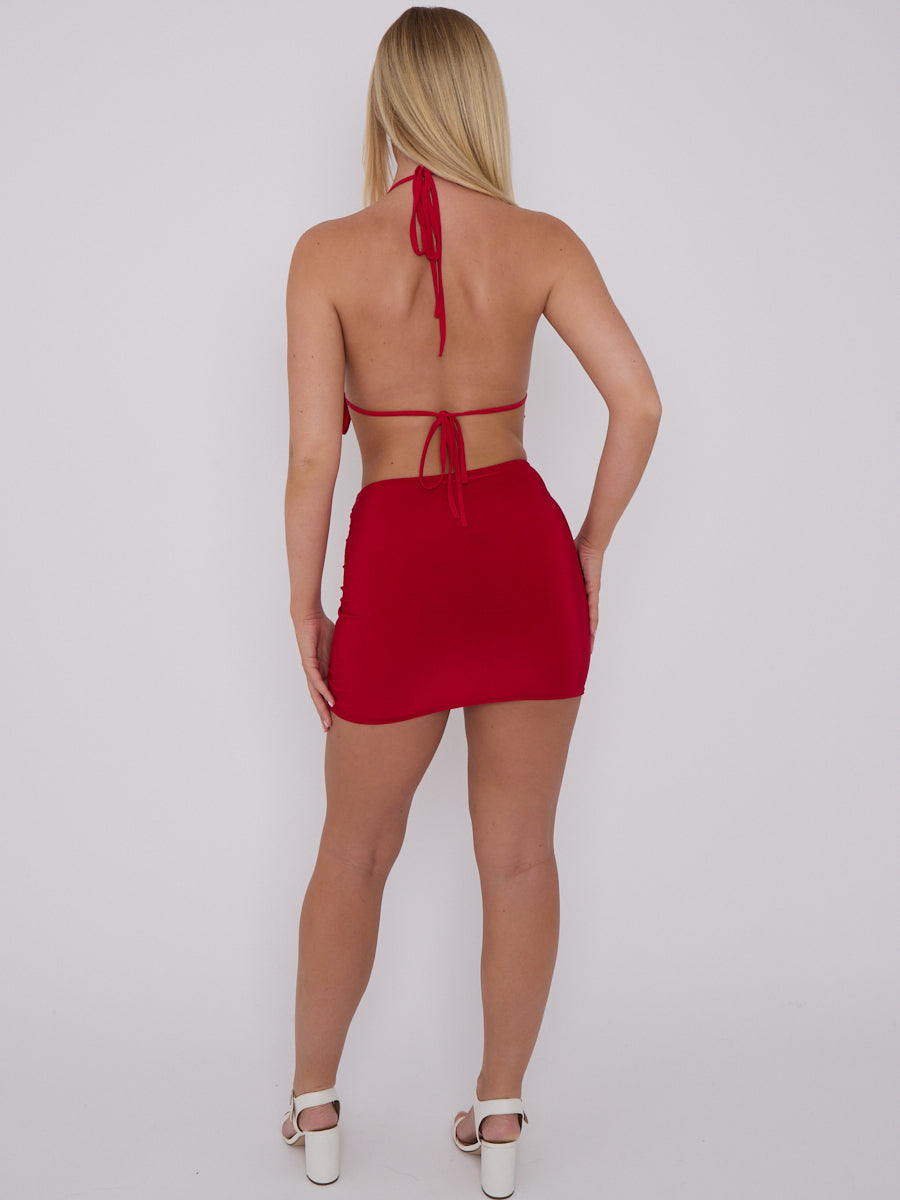 Slinky Halter Ruched Bralet & Mini Skirt Co-ord