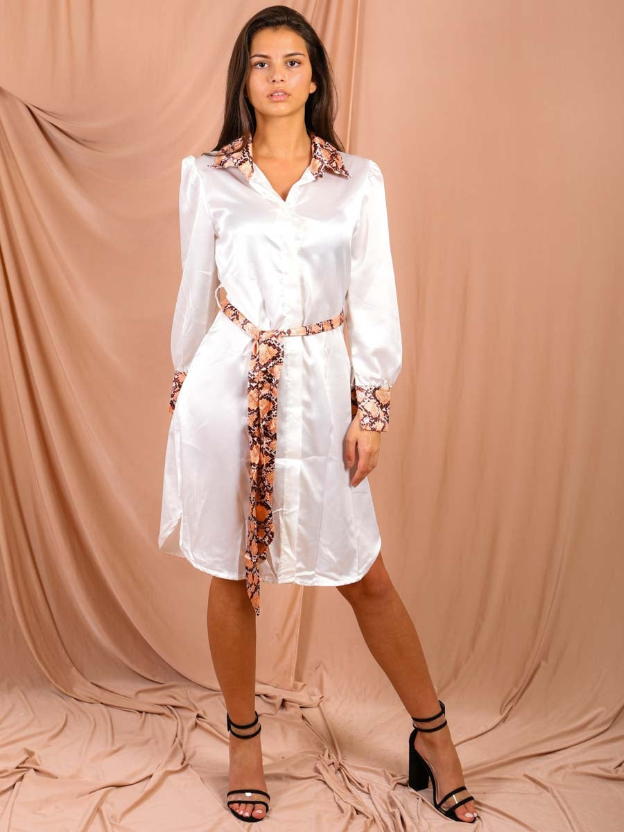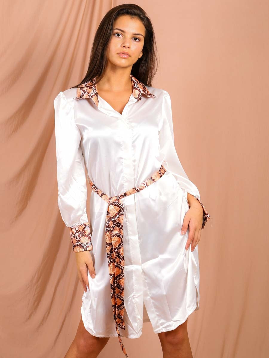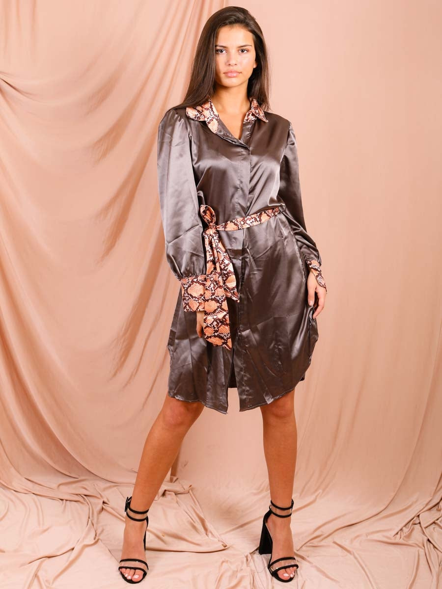 Snake Print Detail Satin Shirt Dress