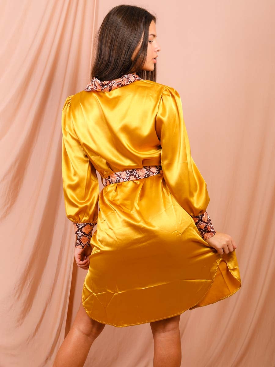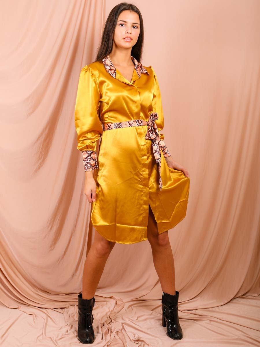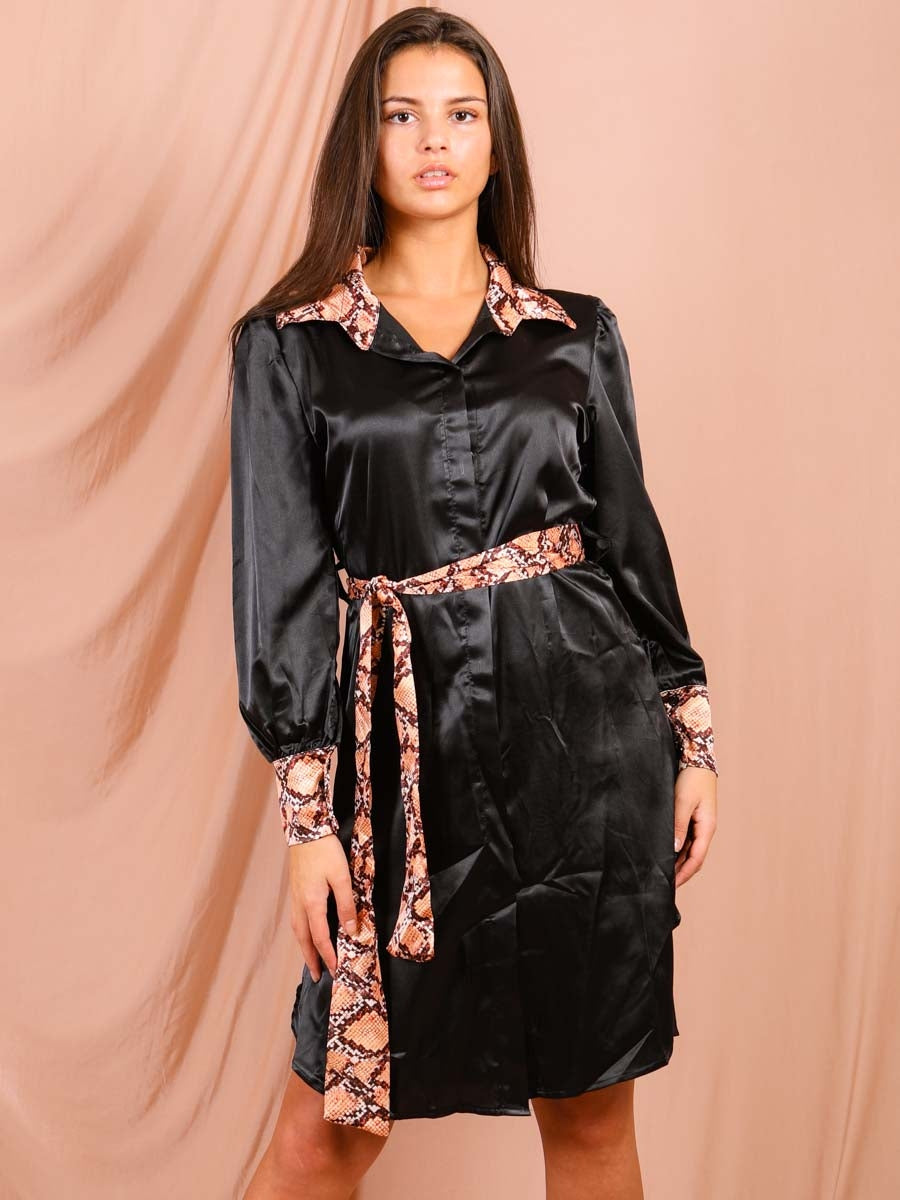 Snake Print Detail Satin Shirt Dress