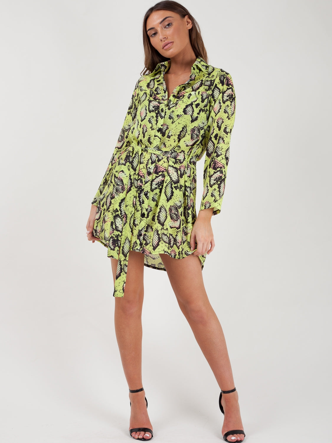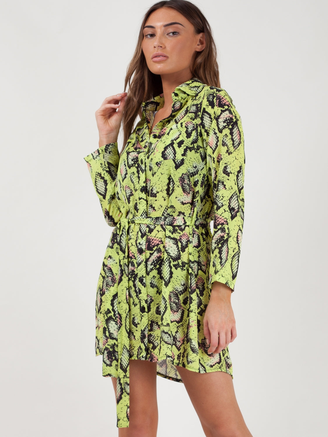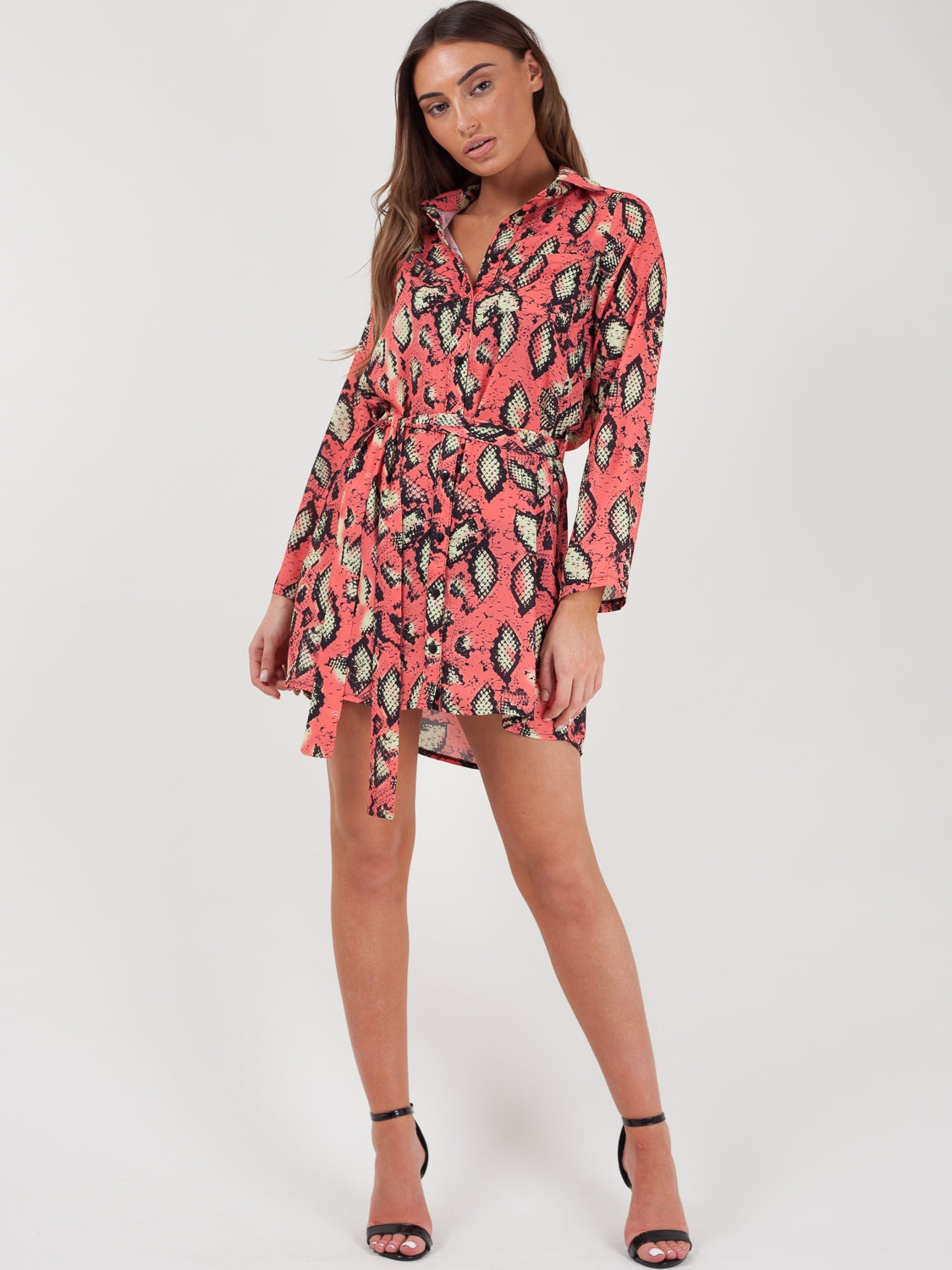 Snake Print Tie Waist Shirt Dress