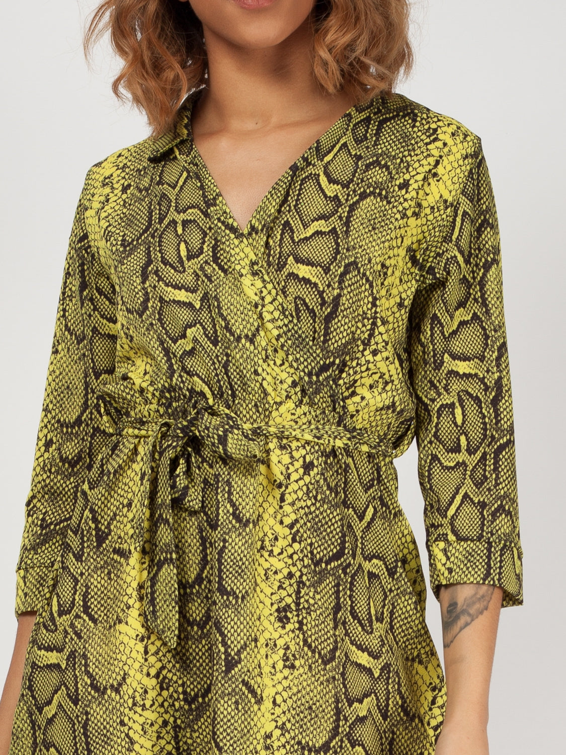 Snake Print Wrap Front Belted Dress