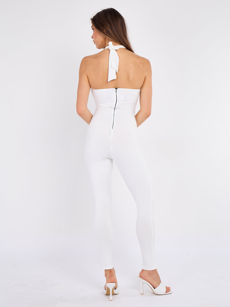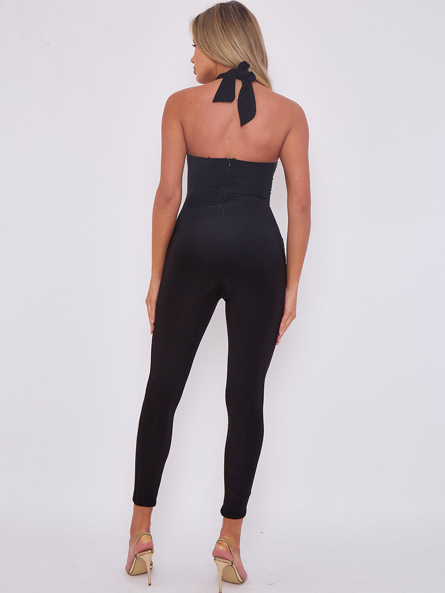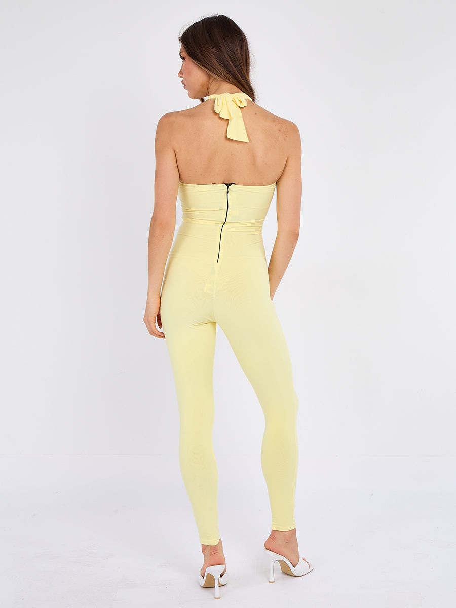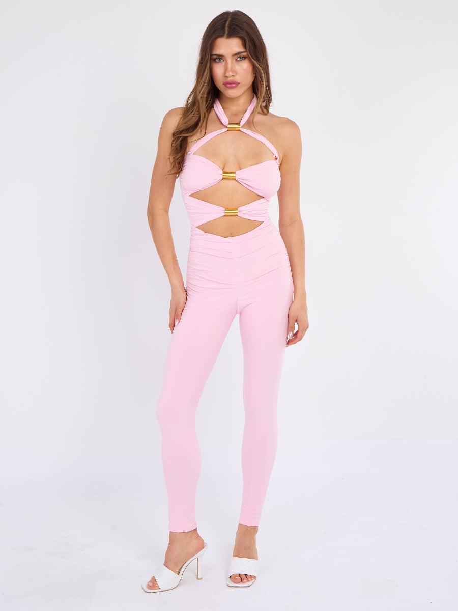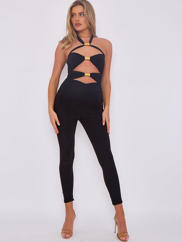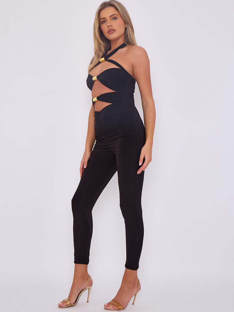 Spring Coil Cut Out Detail Halter Jumpsuit