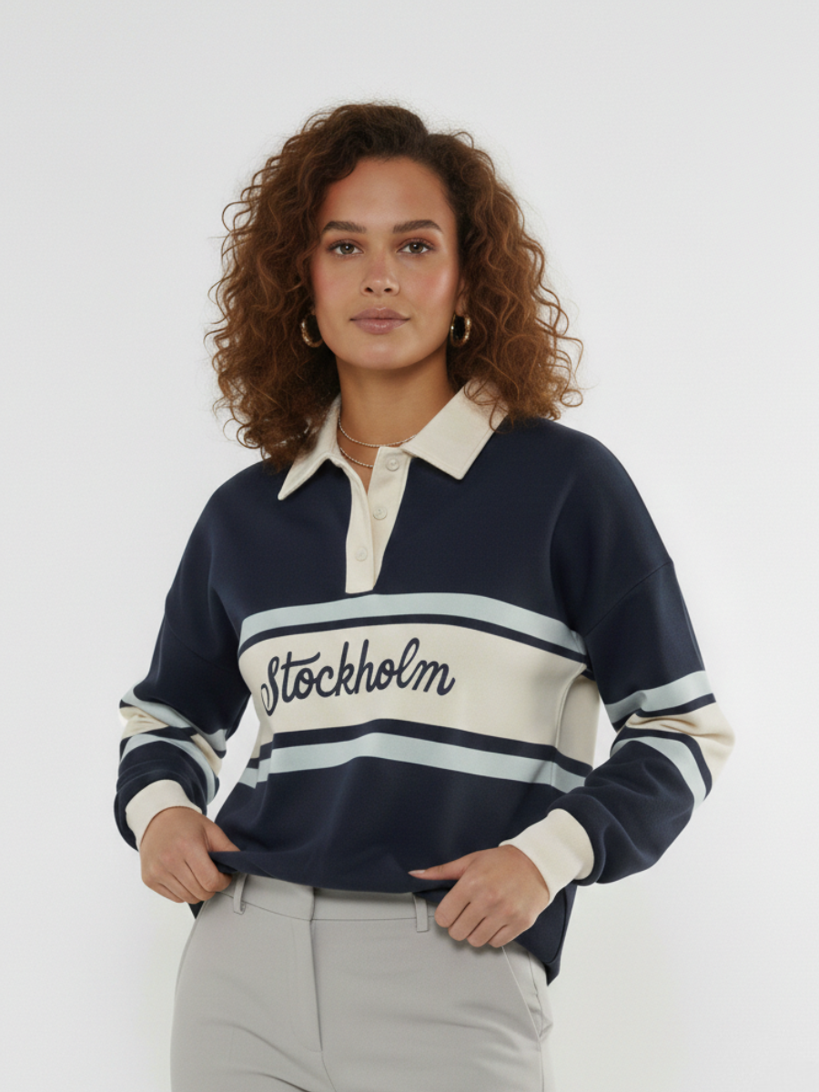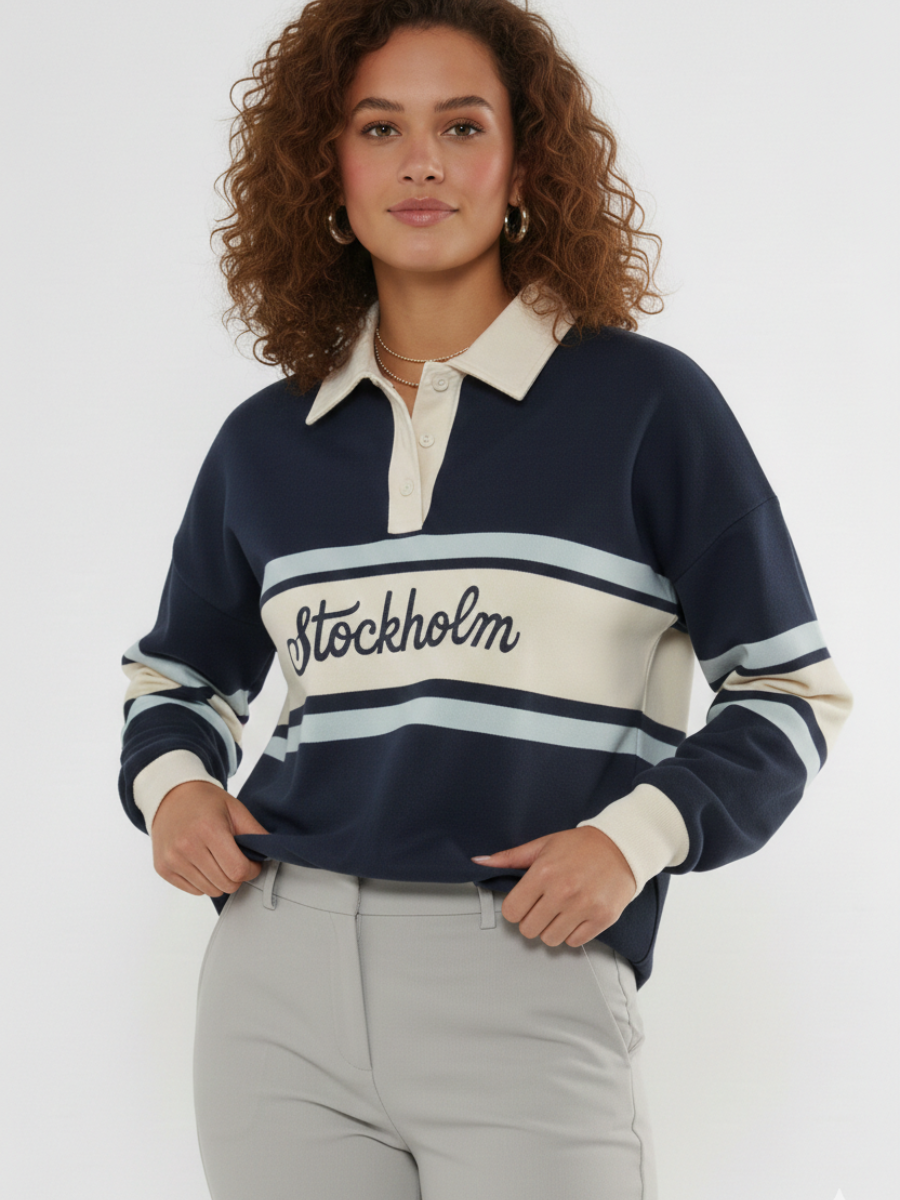 Stockholm Embroidered Rugby Collar Sweatshirt