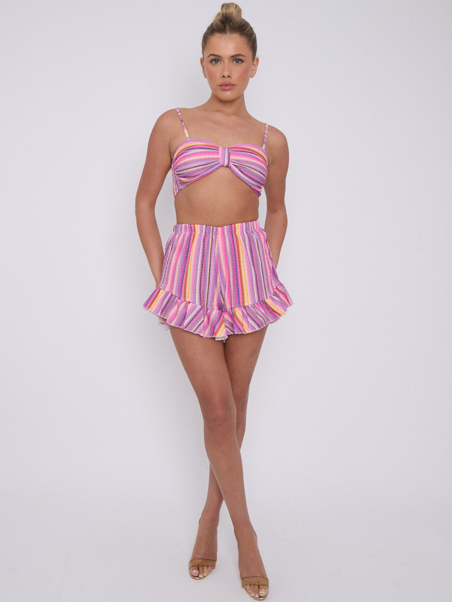 Striped Bralet & Frill Shorts Co-ord
