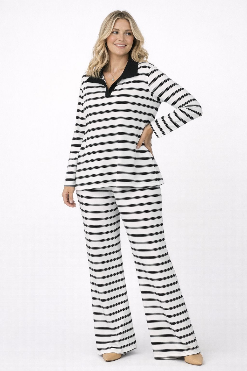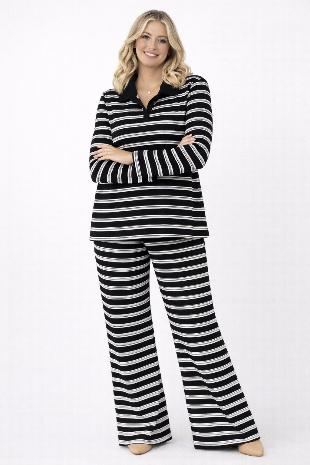 Collar Striped Top & Wide Leg Trouser Co-Ord