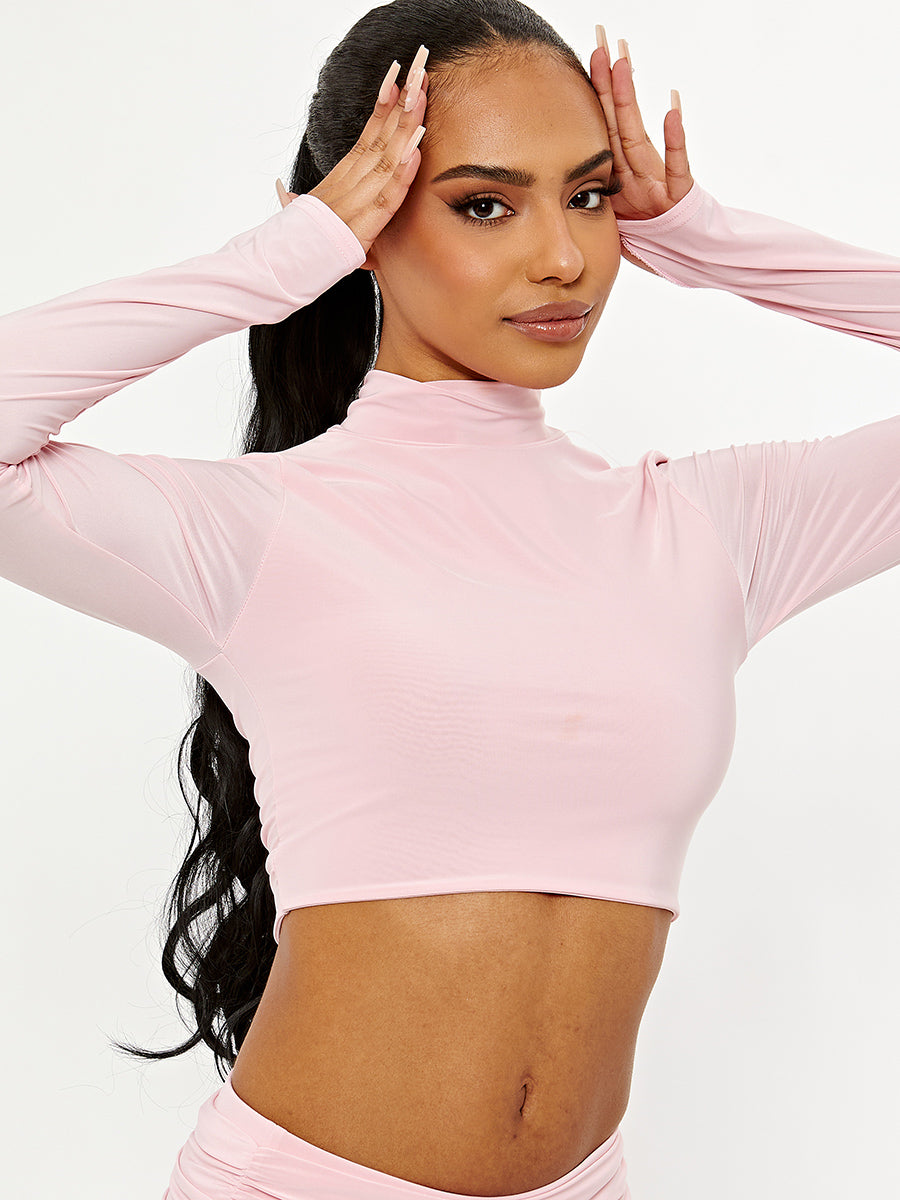 Thumb Hole Slinky Crop Top & Ruched Skirt Co-ord