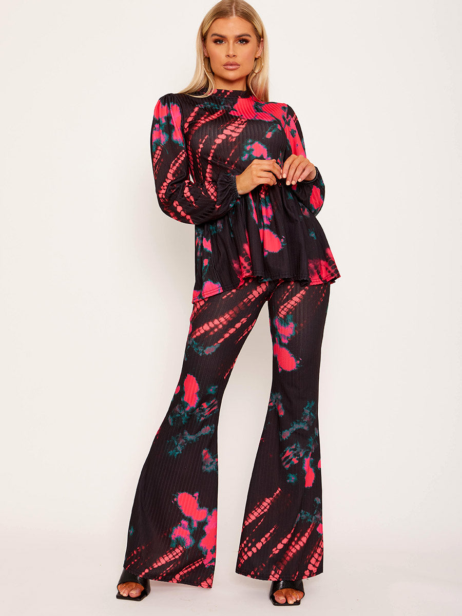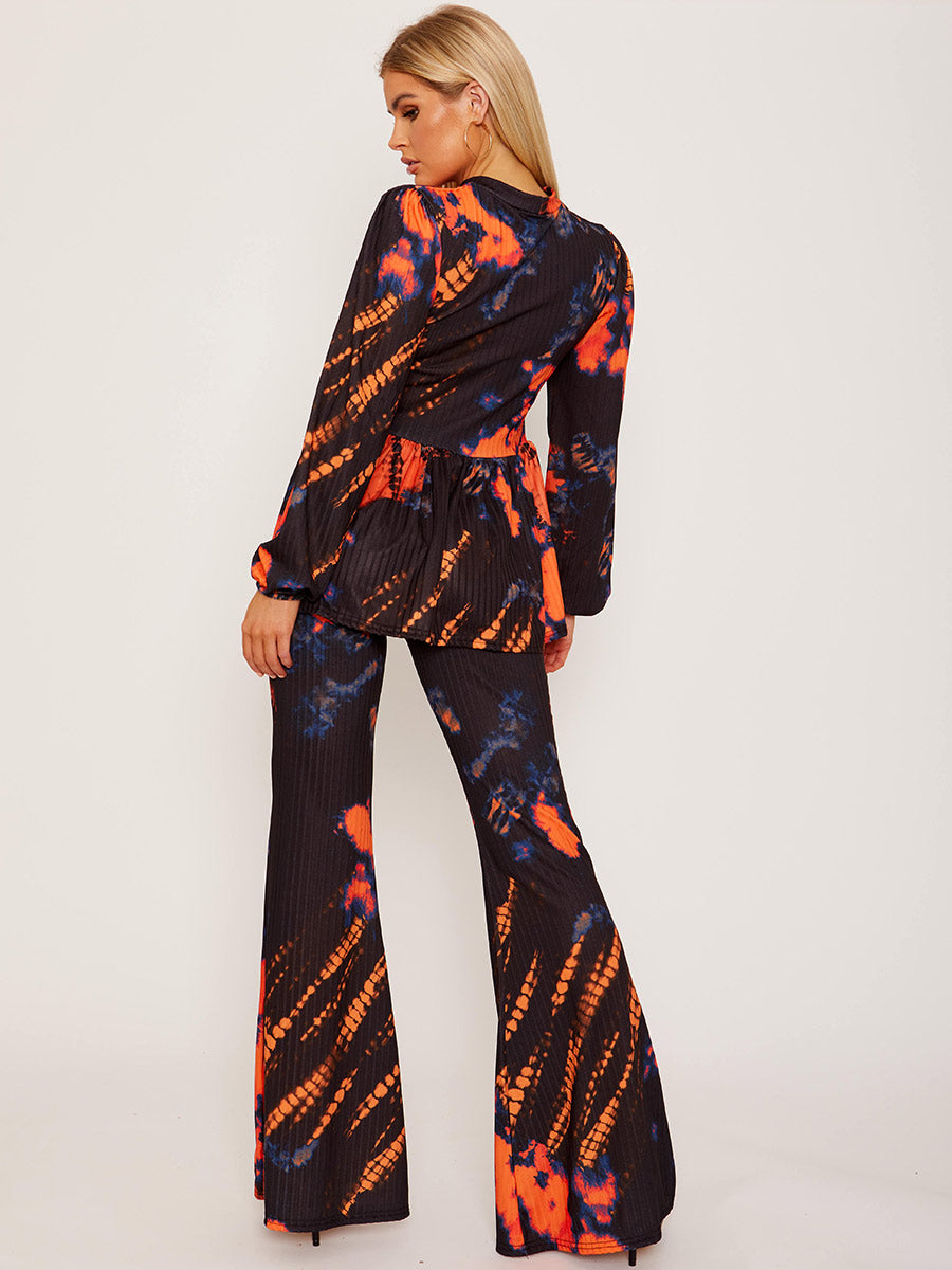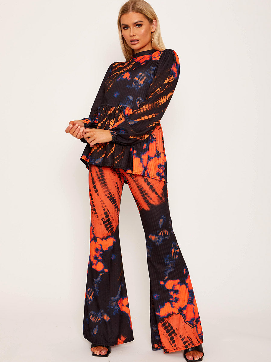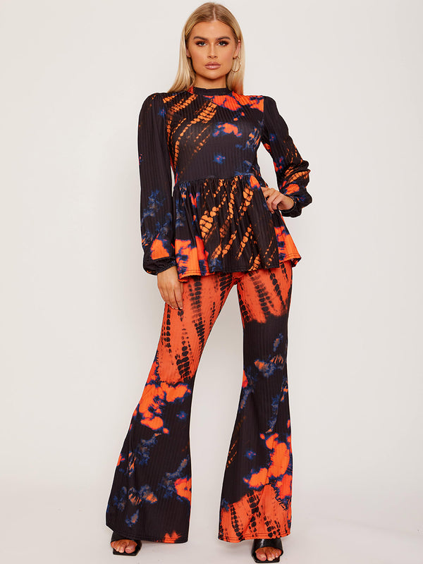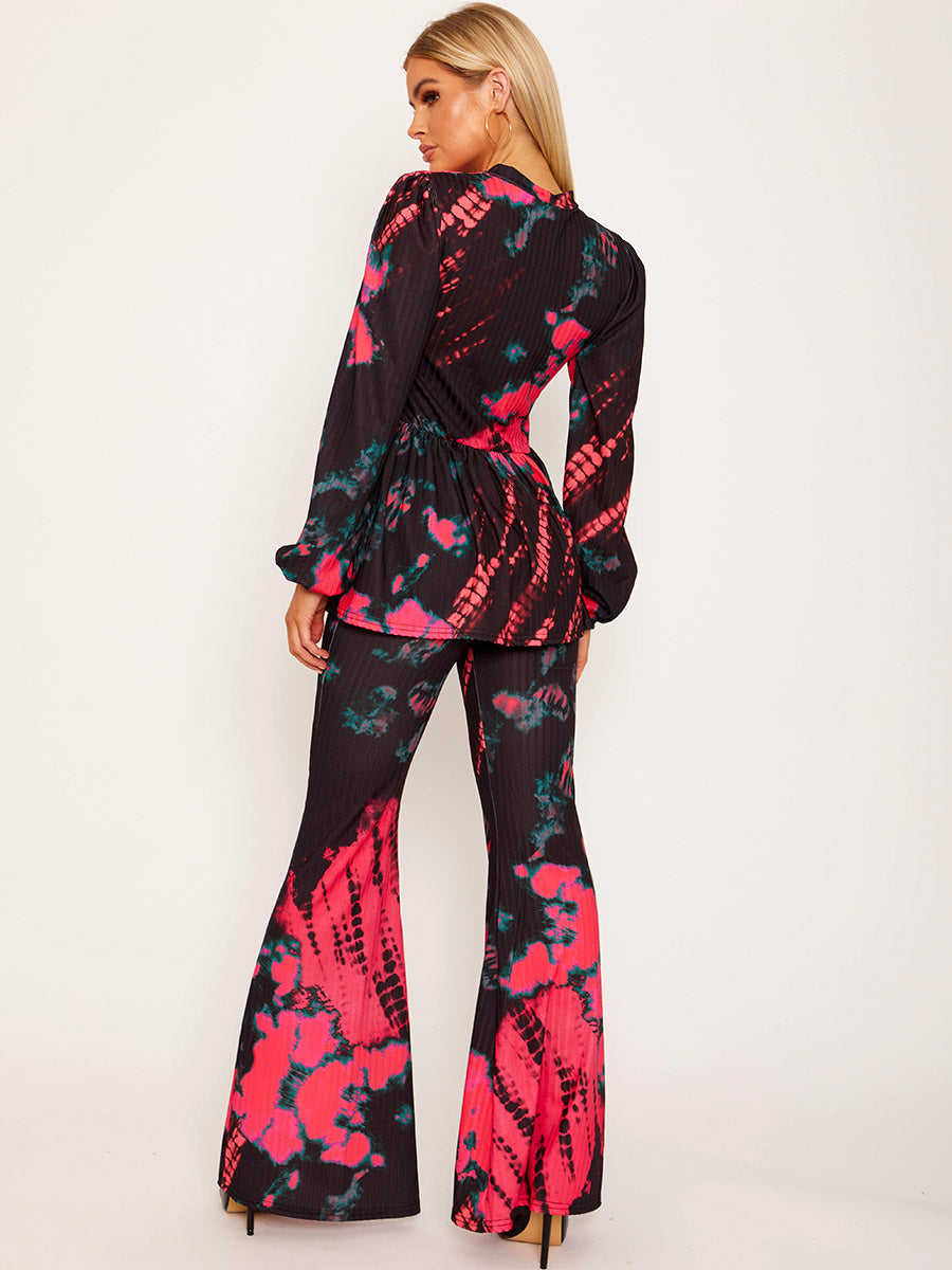 Tie Dye Peplum Top & Flared Trouser Co-ord