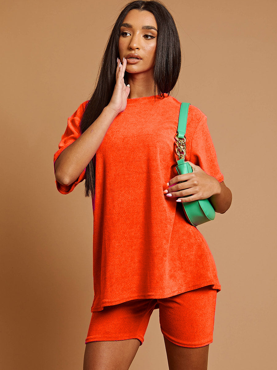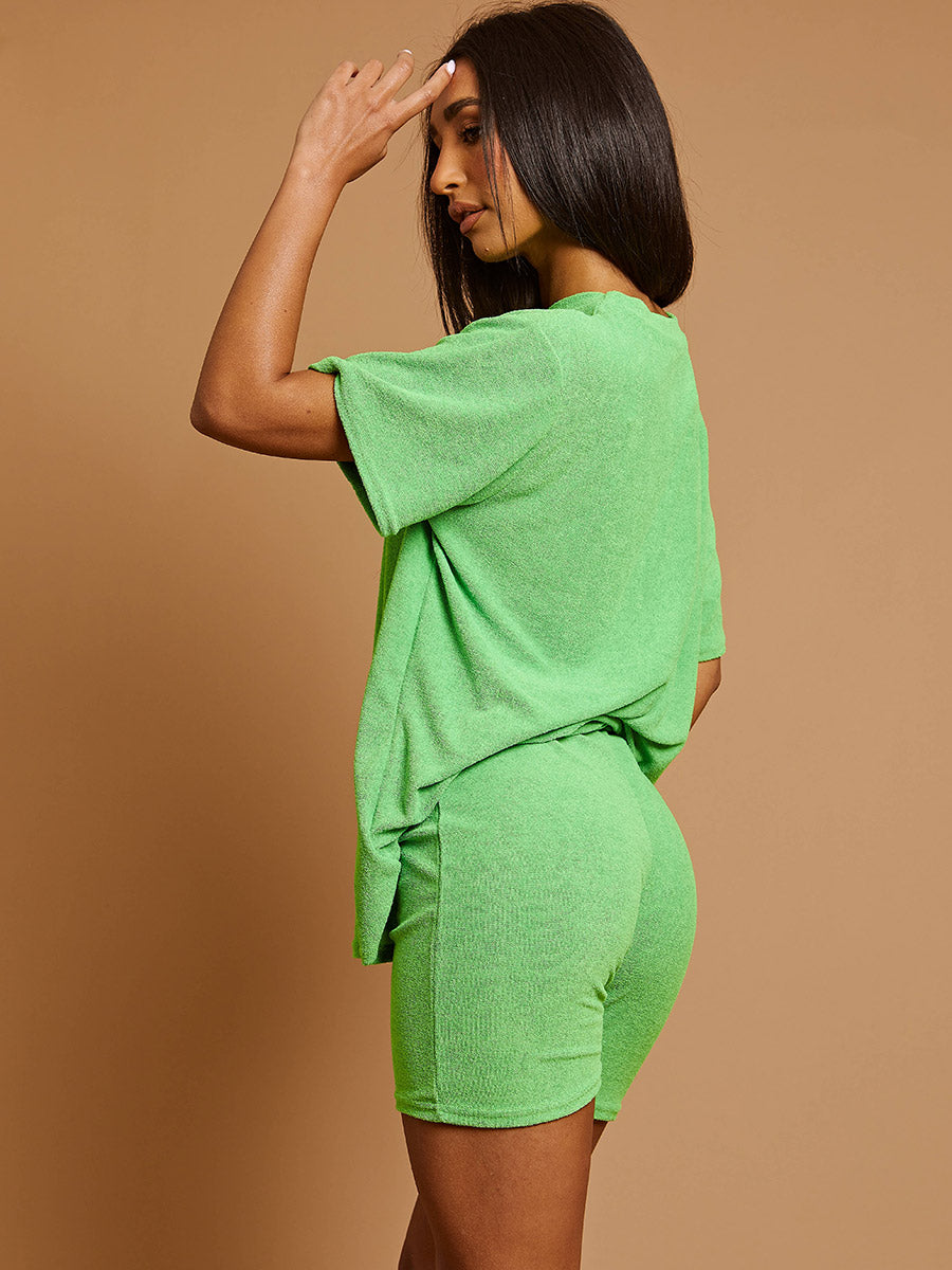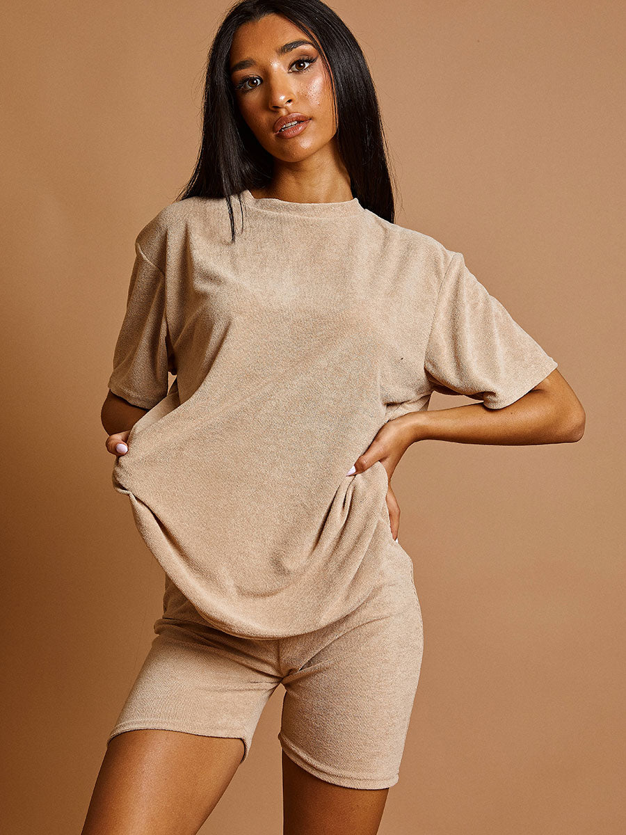 Towelling Fabric Oversized Top & Shorts Co-ord