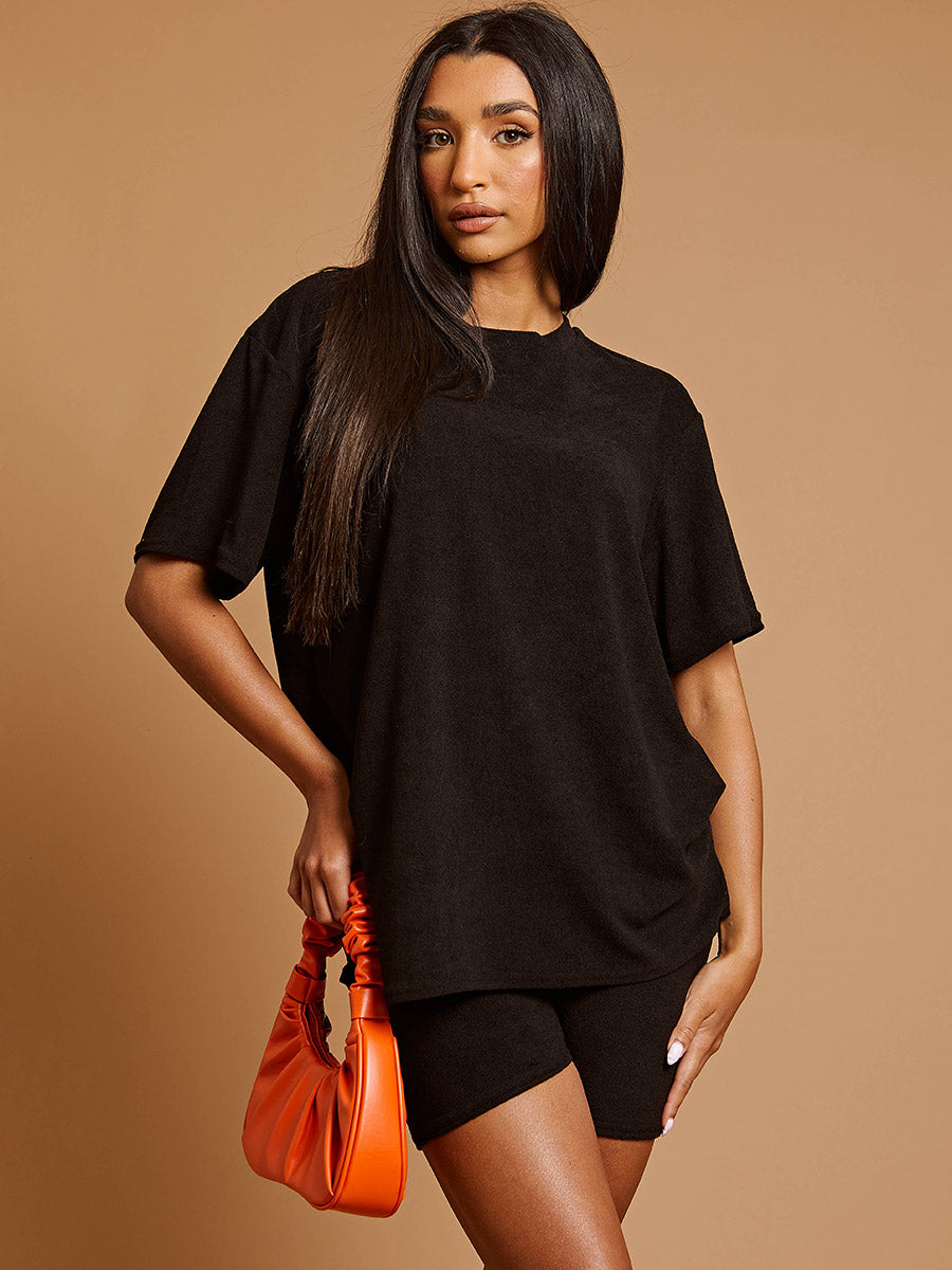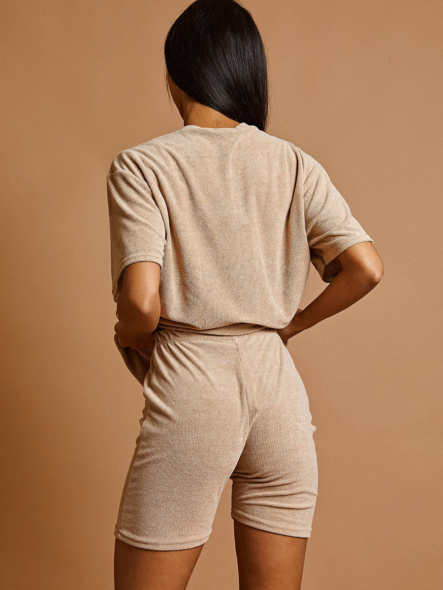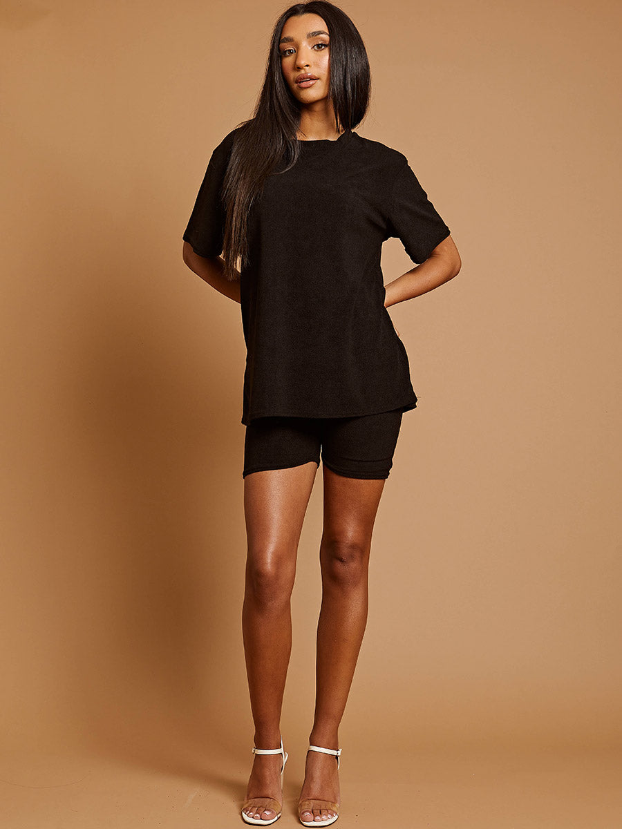 Towelling Fabric Oversized Top & Shorts Co-ord