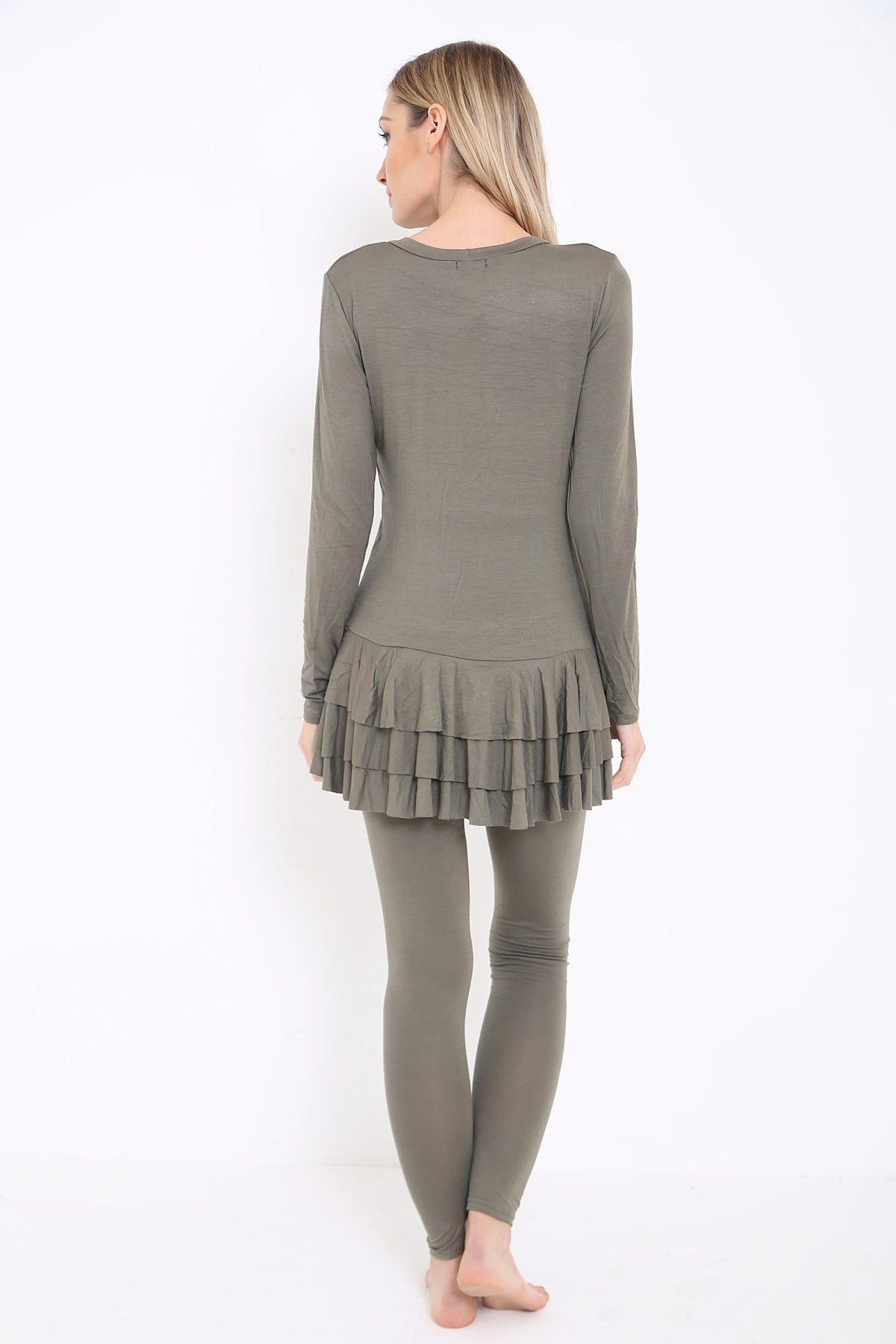 Triple Layered Ruffle Frill Top And Bottom Lounge-wear