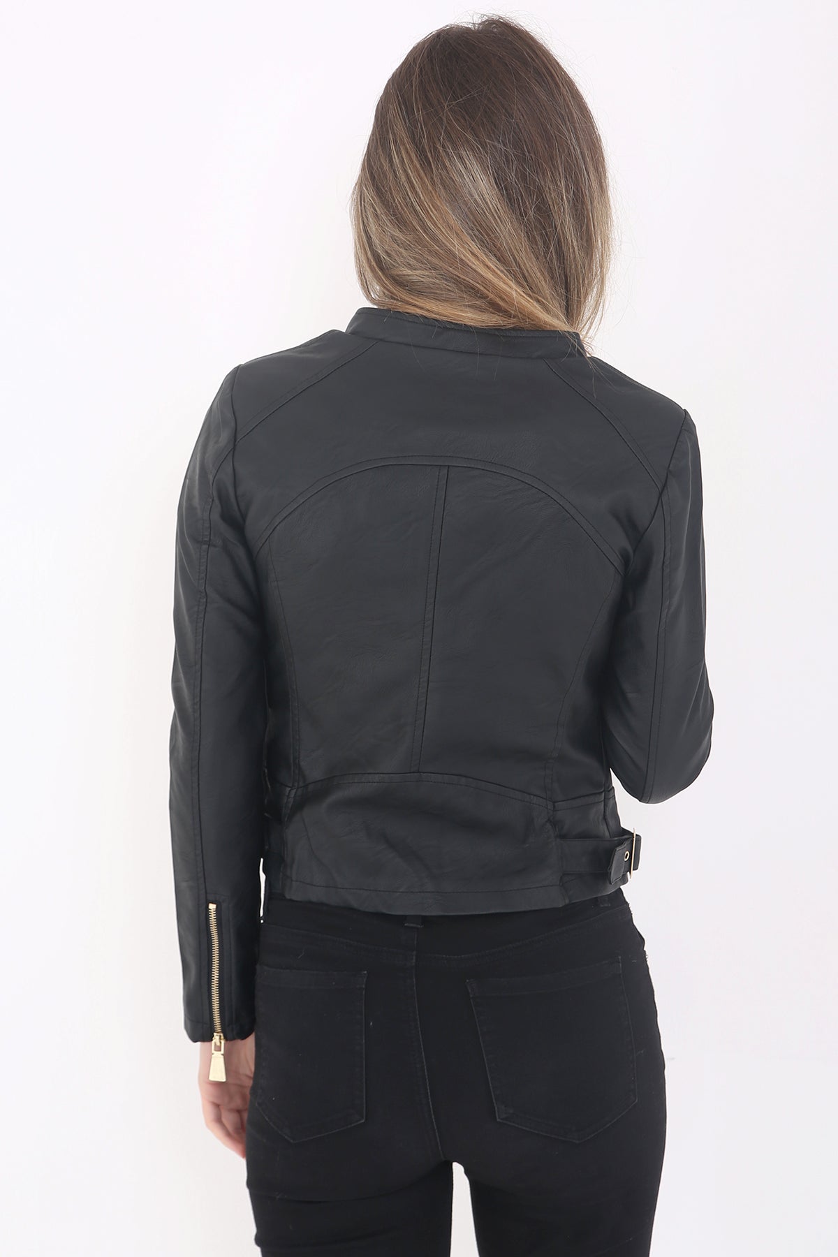 Triple Zip Detail Faux Leather Biker Jacket