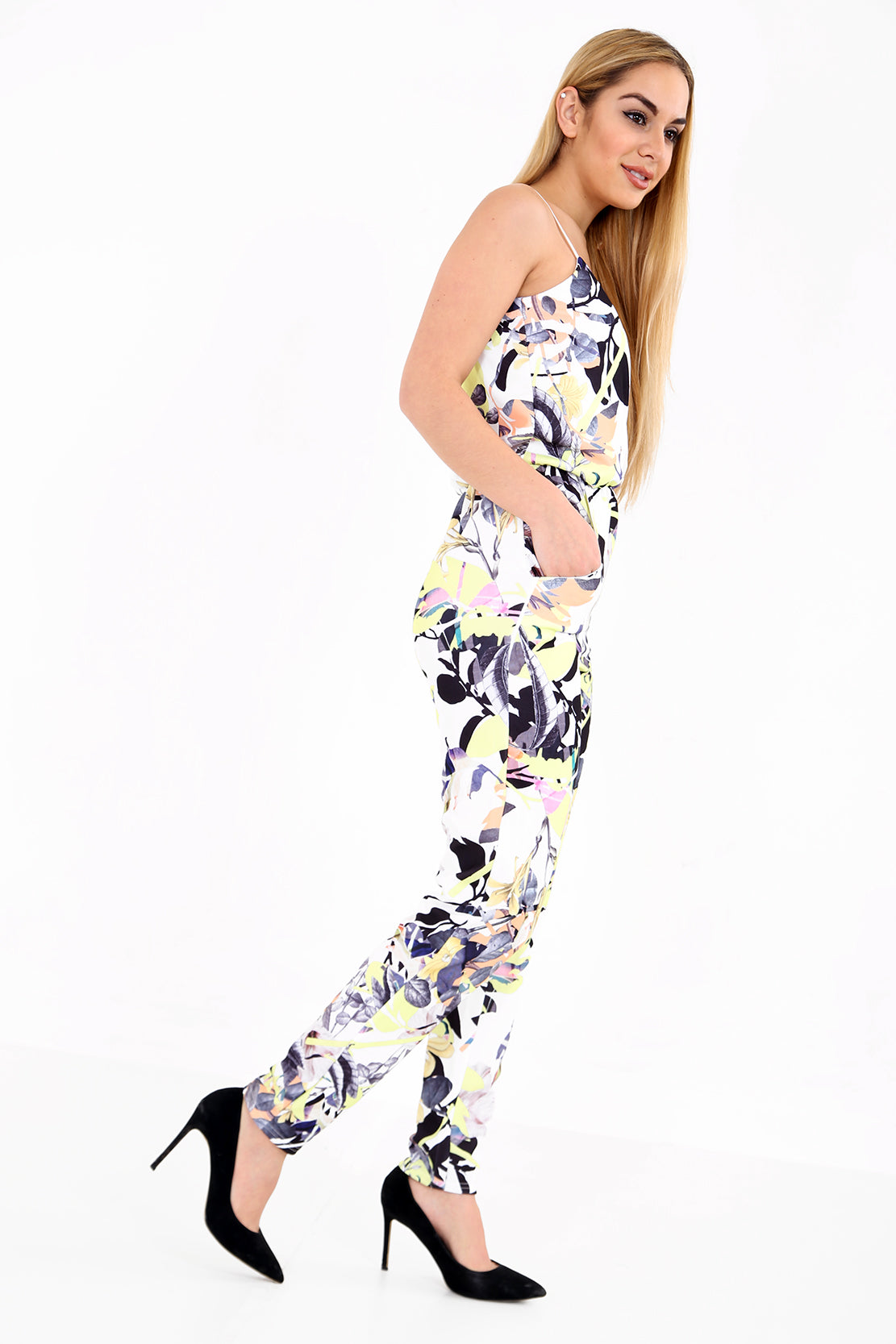 Tropical Floral Print Wrap Over Cami Jumpsuit