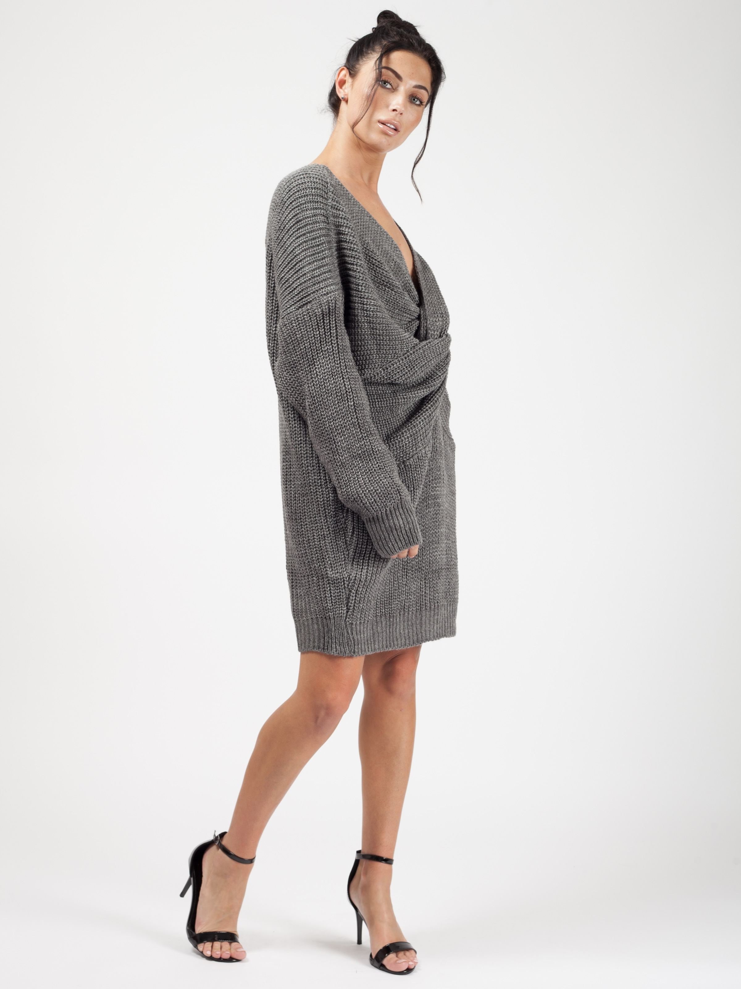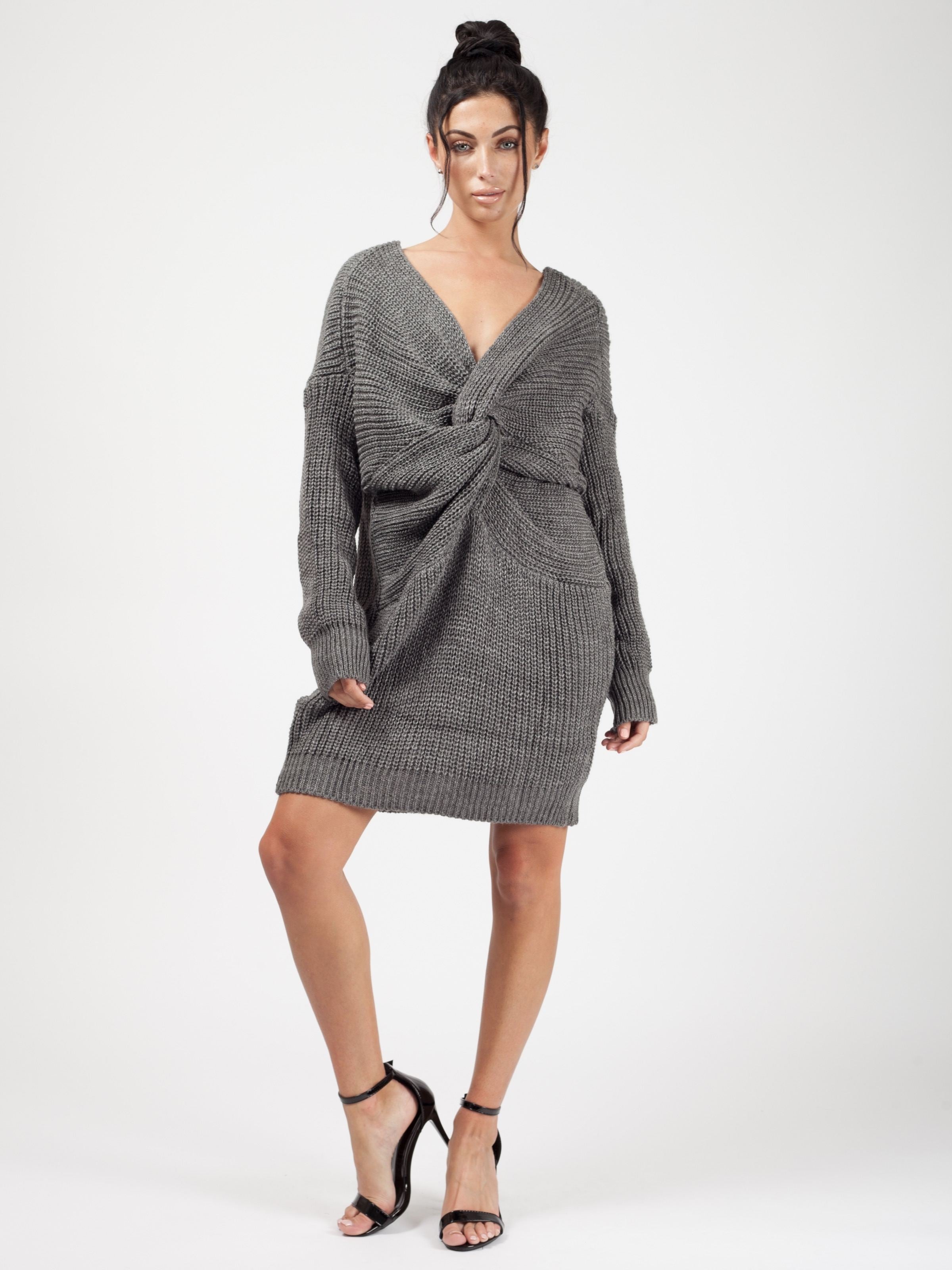 Twist Front Knitted Jumper Dress