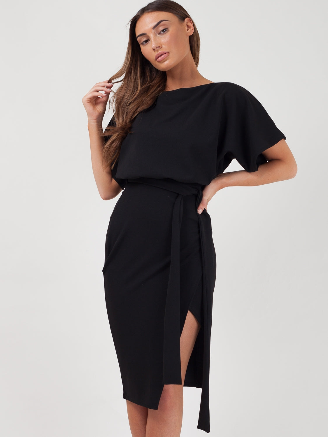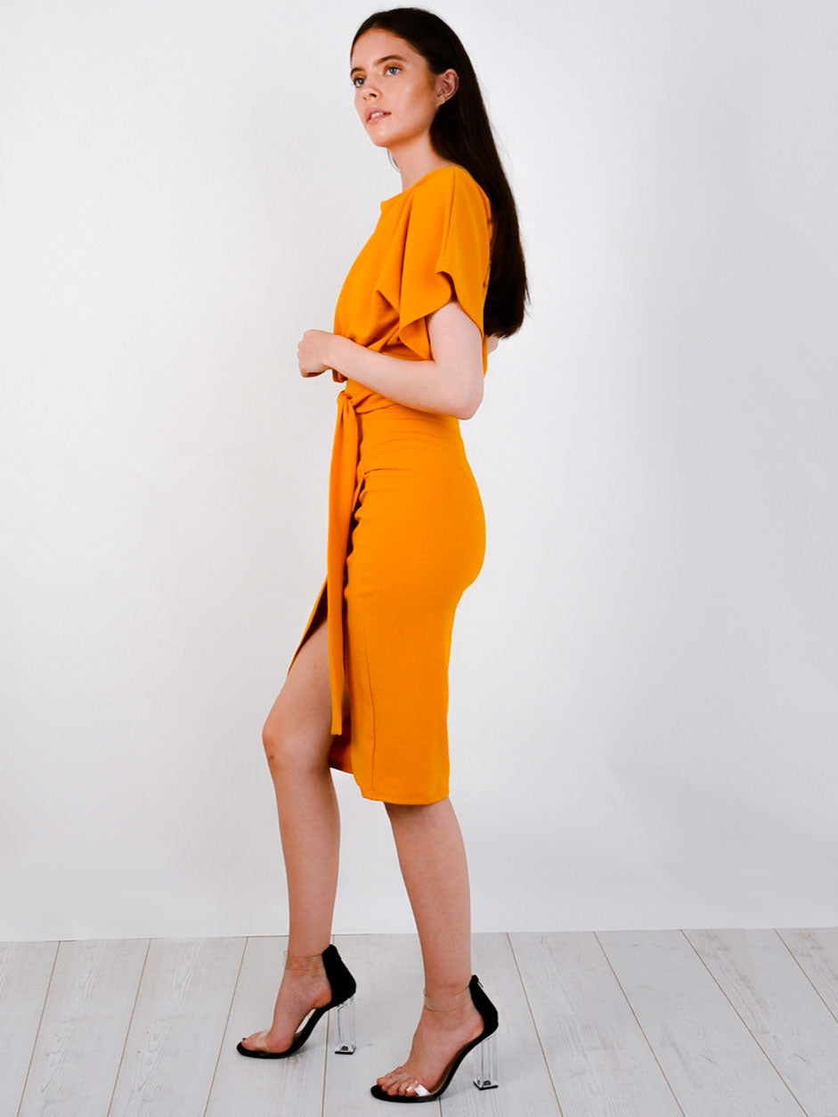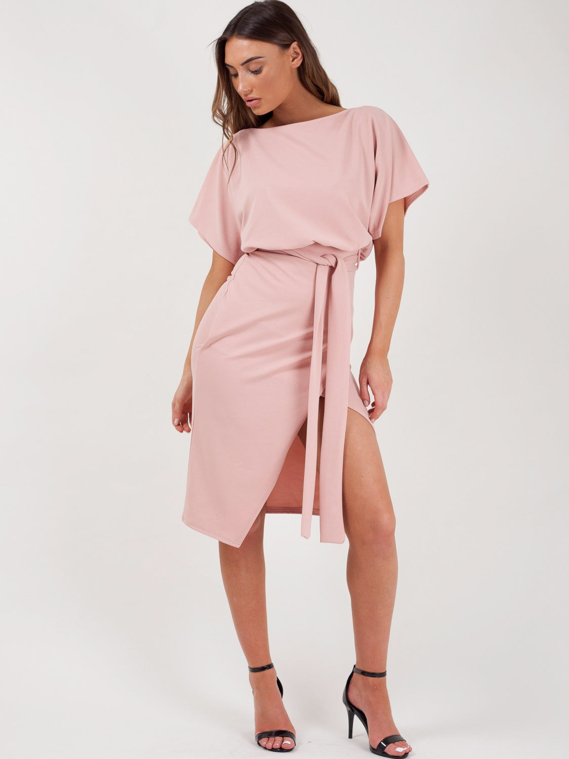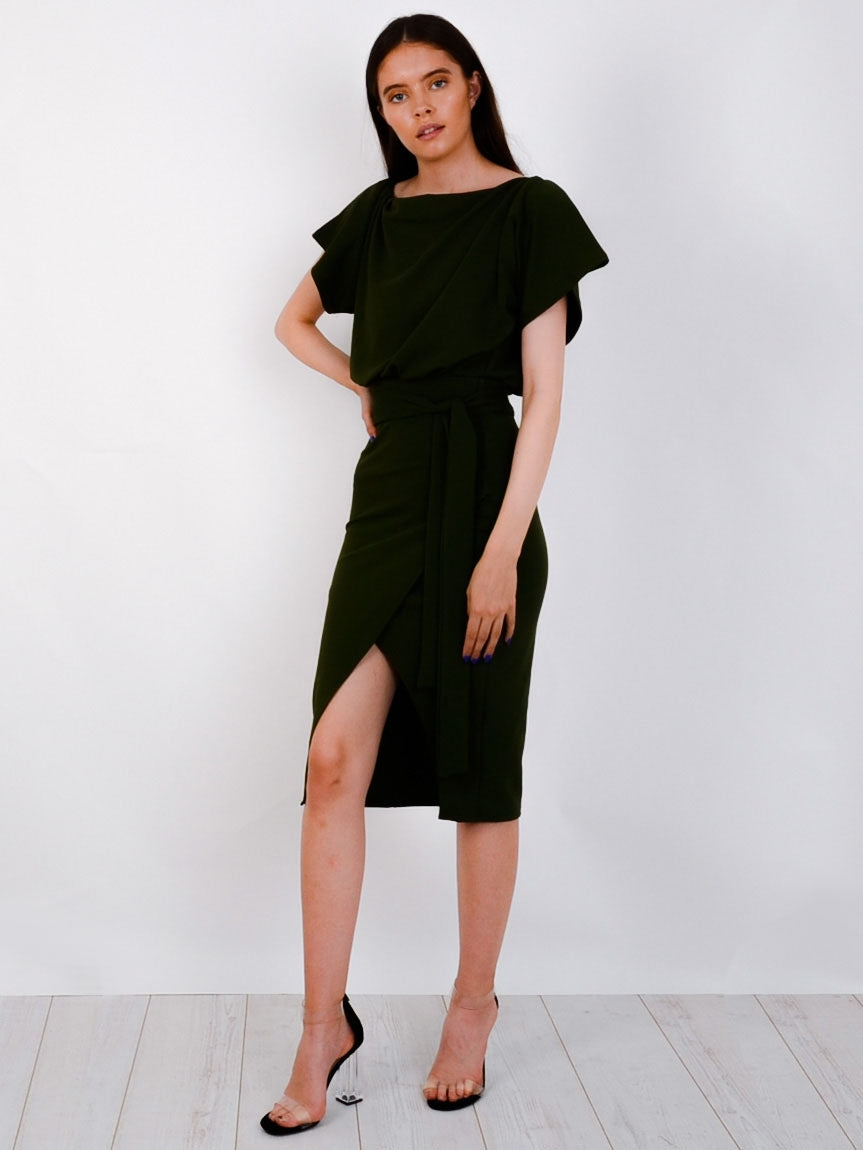 Wrap Front Belted Midi Dress